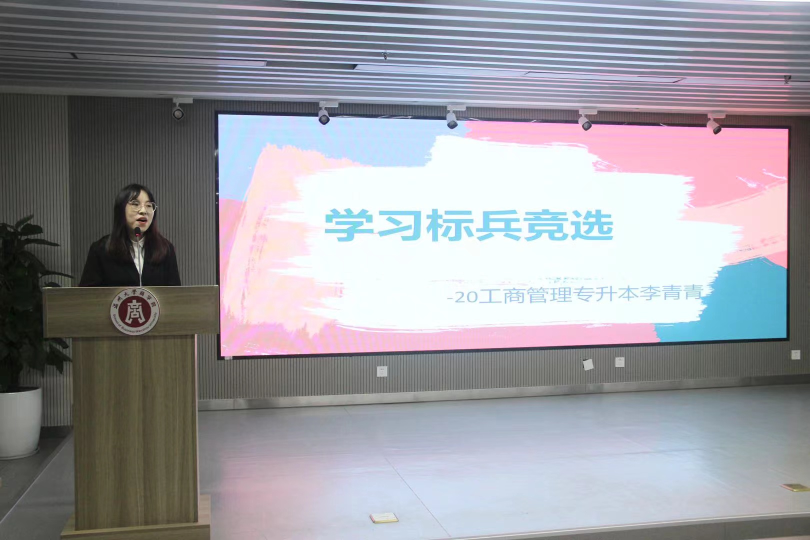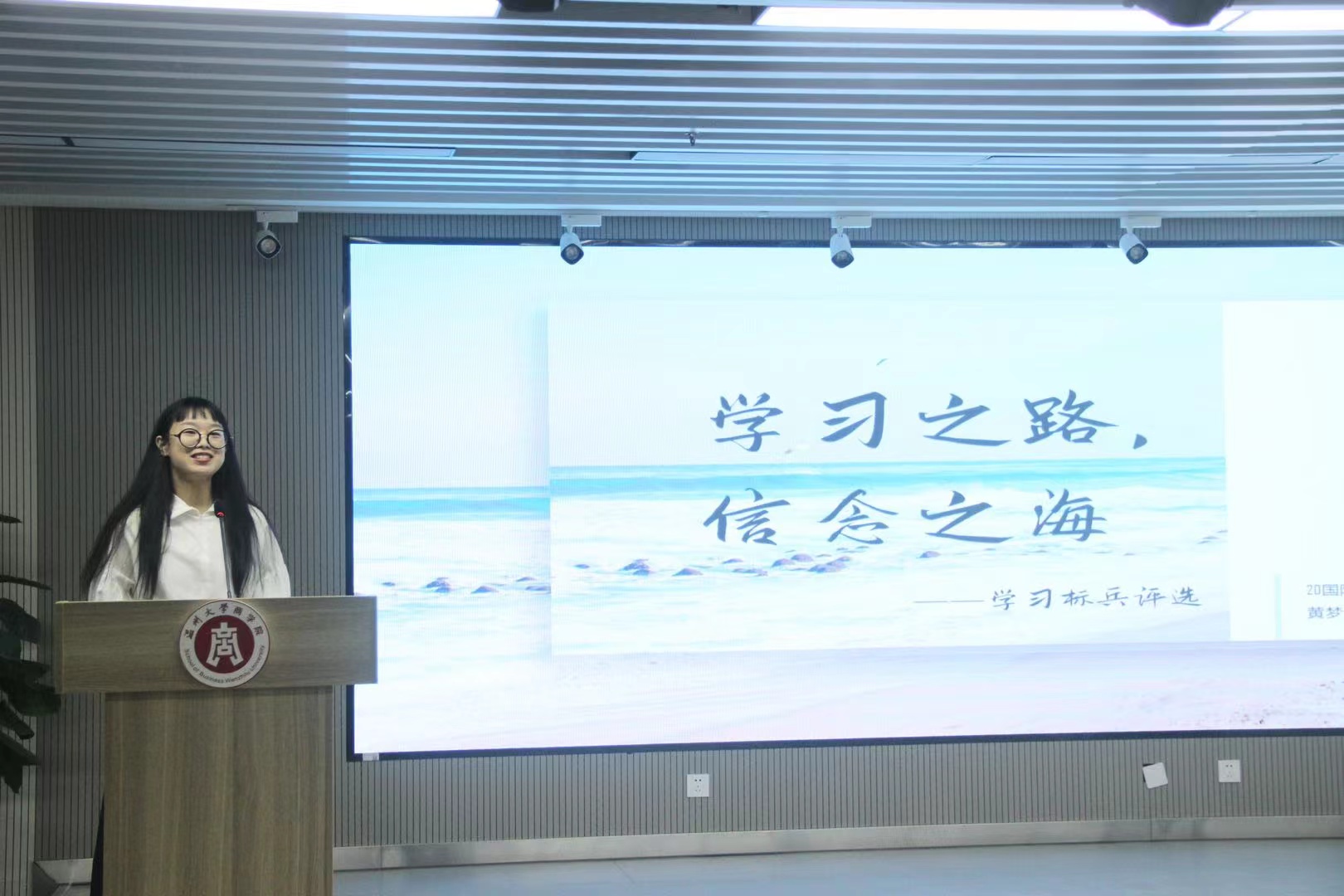 在优良学风班评选中,18国贸及19市销两个评选班级的班级代表对班风、学风、学生骨干队伍、班级凝聚力、课外活动、未来展望等多个方面进行了精彩展示。在两个班级评选演讲结束后,由上届获得2019-2020学年优良学风班称号的18级金工2班代表上台进行展示,并为与会的各班代表提供了建设班级的好点子。