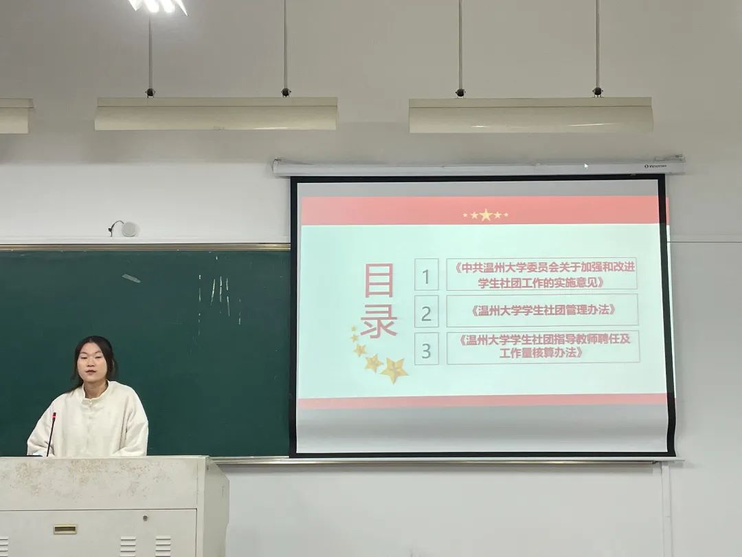 学生社团指导教师聘任及工作量核算办法》的相关内容对各社团成员进行讲解。