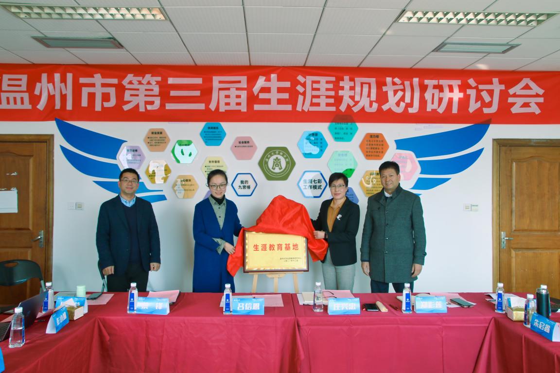 生涯教育研究中心也做了许多实践探索,本学期与温州实验中学府东分校开展了校本课程建设合作。因而在本次研讨会上,双方进行了生涯教育基地授牌以及颁发《做自己的生涯规划师》课程聘书仪式。在合作仪式上,温州实验中学教育集团副校长周莹校长结合当代“双减”背景下的课后服务教育,认为今天的基地授牌是生涯教育的开始,希望在长远的未来,双方可以有深度合作,成为一种常态,并且要进一步推进义务教育阶段的生涯课程体系化建设,努力将生涯教育活动打造成有品质、有特色的教育品牌。