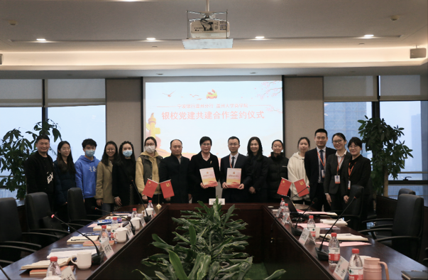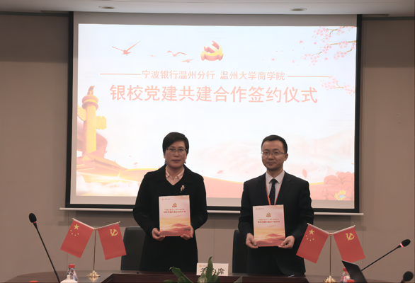 本科生第一支部与宁波银行温州分行第一党支部开展了党建共建签约仪式。