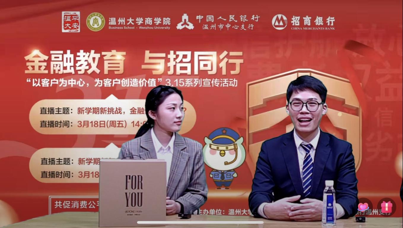 当天晚18:30,招商银行温州分行潘桂杨老师与党员金融公益宣讲团成员柯璟同学做客715直播间。小潘老师结合3·15晚会中所提到的多家网站恶意生成弹窗广告引导用户下载软件导致诈骗案件发生等恶性事件,提醒师生一定要保护好个人信息,时常关注个人征信,并始终坚信家长、老师是大家最坚强的后盾。直播最后,小潘老师和小柯同学,对师生们提出的问题进行一一解答。