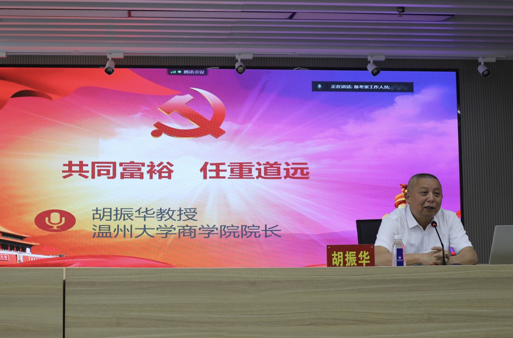 胡振华院长的讲座围绕“为什么要提出共同富裕、为什么把浙江作为共同富裕示范区、如何走好共同富裕道路、共同富裕必须处理好的几个关系”四方面展开。他强调,只有消除贫困、实现共同富裕,党的执政基础才牢靠;共同富裕可以解决我国当前的主要矛盾和中等收入陷阱问题,促进消费增长。浙江省因其富裕程度较高,经济发展均衡性较好,拥有重商主义、改革创新、坚韧不拔的独特精神财富成为全国的共同富裕示范区。走好共同富裕道路一定要念好“民”“公”“福”三字经,并妥善处理好政府与市场、公平与效率、增长与分配、尽力而为与量力而行的关系。