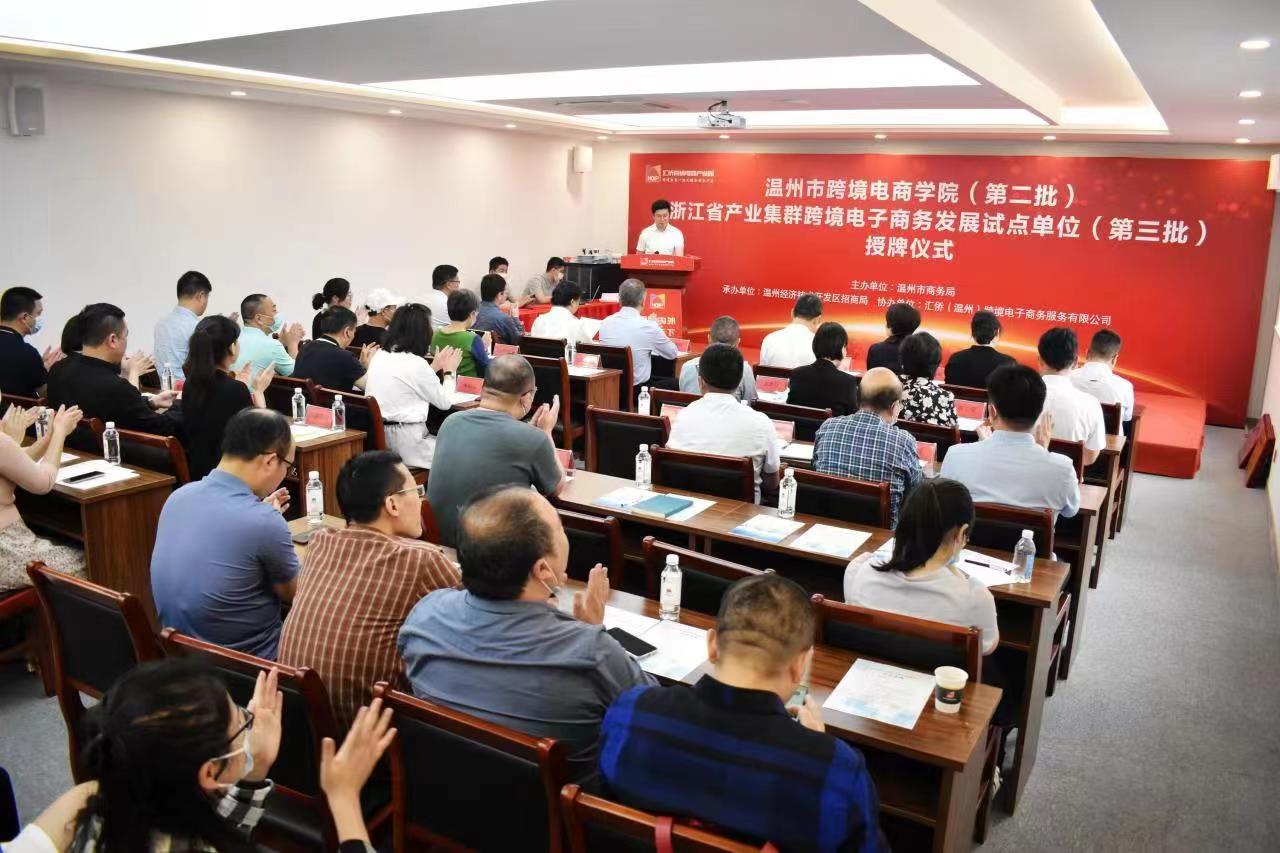 仪式上,为乐清市电器、苍南县针织内衣、龙港市礼品、经开区五金卫浴等获批浙江省第三批产业集群跨境电商发展试点单位及入选第二批温州市跨境电成人电影