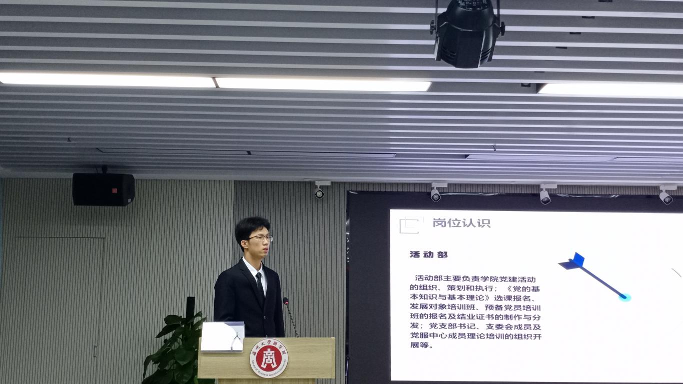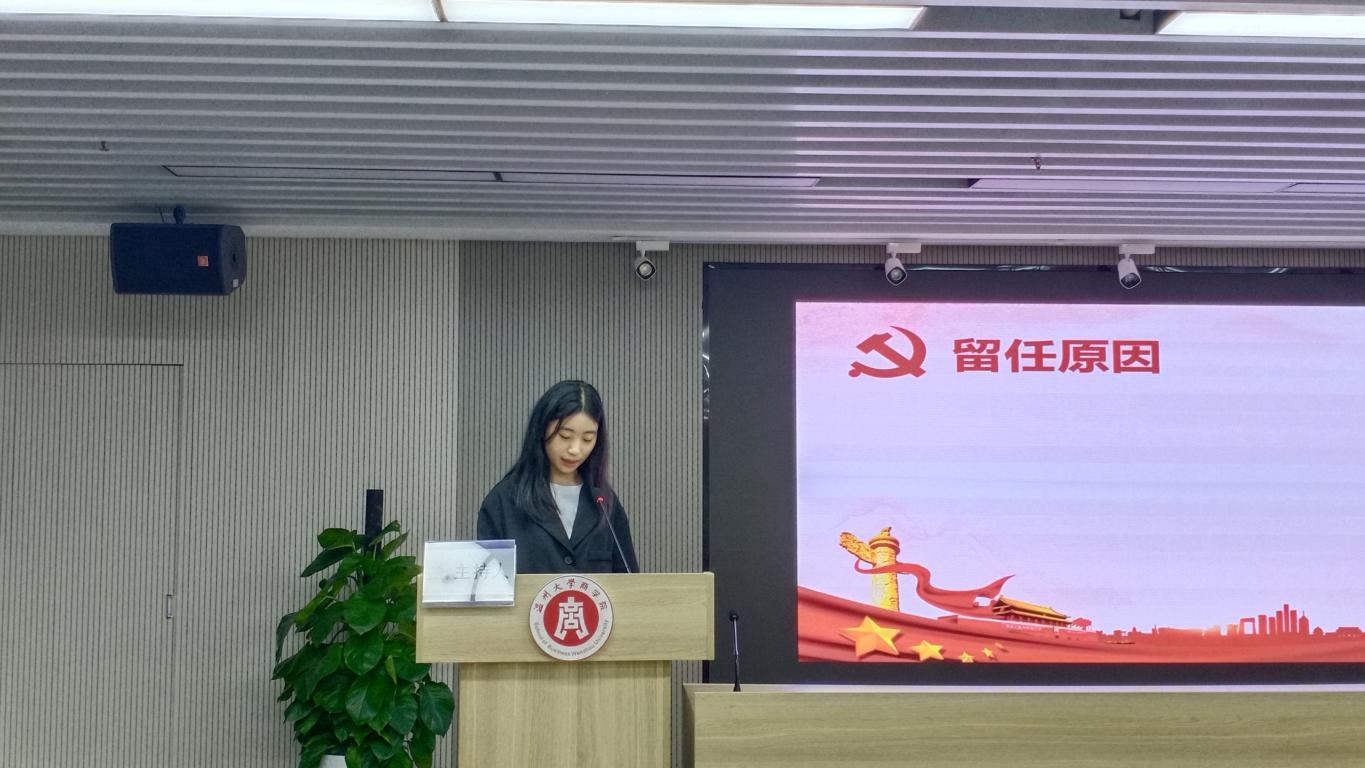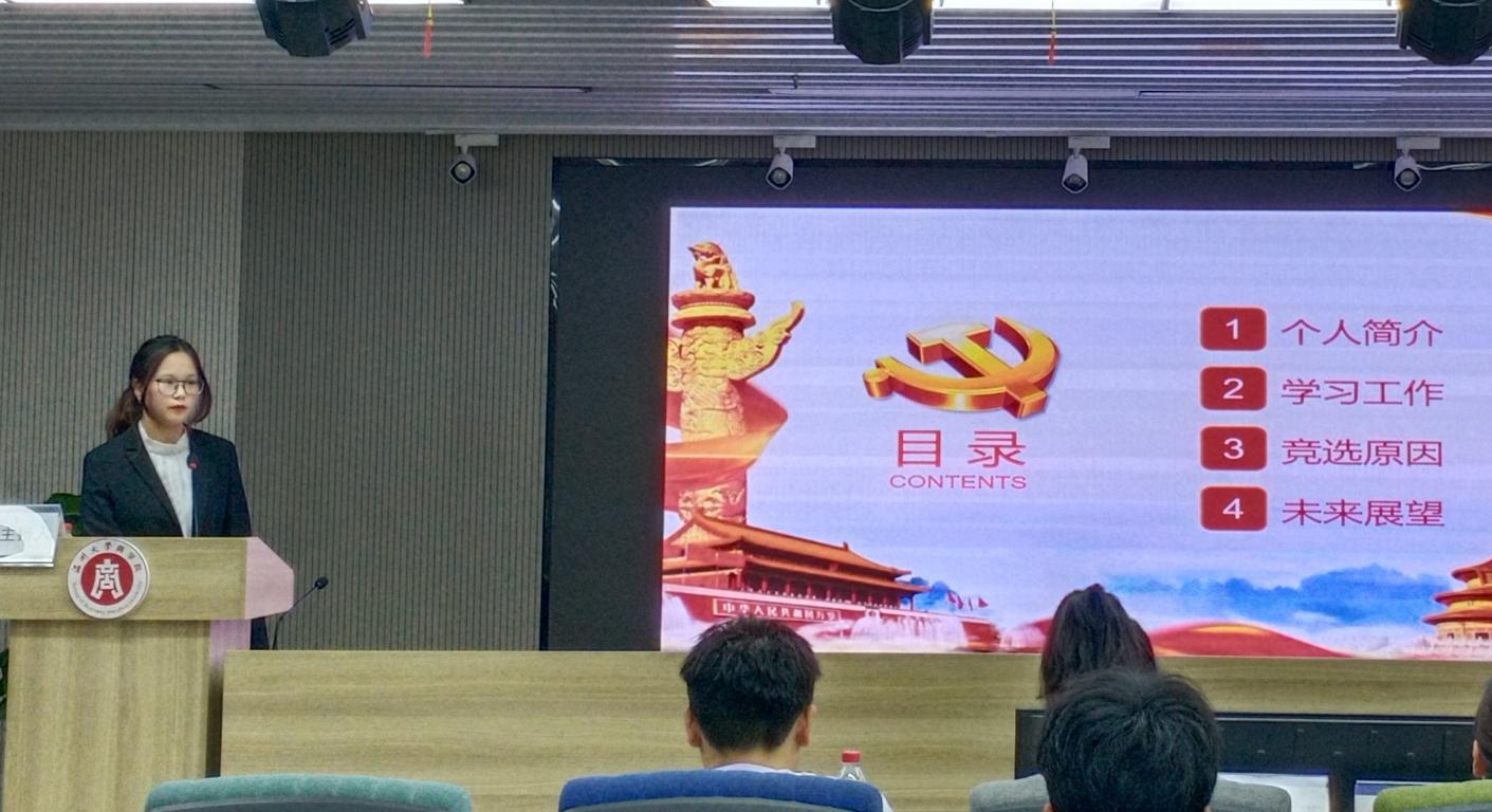 随后,各竞选人进行竞选演讲。他们从自身优势、工作经历和未来展望等方面进行汇报。并表示会在未来的工作中认真学习,为学校、学院的党建工作的发展贡献自己的力量。
