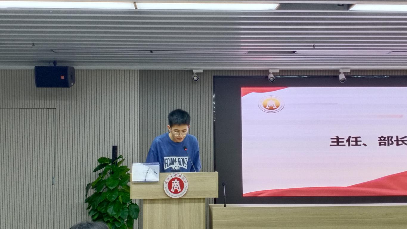最后,聂海燕老师和周洁文老师发表讲话。聂海燕老师对各位支部书记和同学们对学院党建工作的大力理解与支持表示感谢。她谈到,党服是一个可以让学生得到充分锻炼与展示的舞台,希望新一届主任与部长能接过传承的火炬,带领党服继续往更高的目标前行。与此同时,聂海燕老师对新主任与部长们提出了工作要求:端正工作态度,认真对待工作,在工作中学习知识技能,磨炼自己,在磨炼自己中加强团队共建,共同使党建活动向多元化、多样化发展。