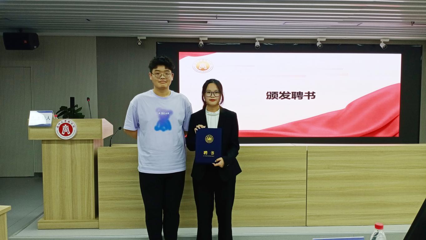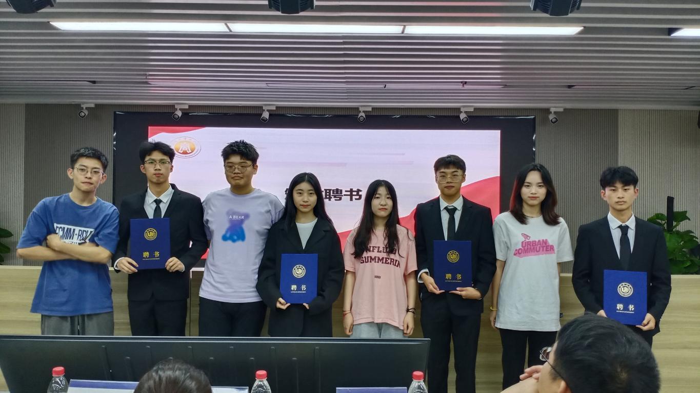 随后,主持人宣读新一届学生党员服务中心主任和部长名单并由上届主任和部长为他们颁发聘书并合影留念。
