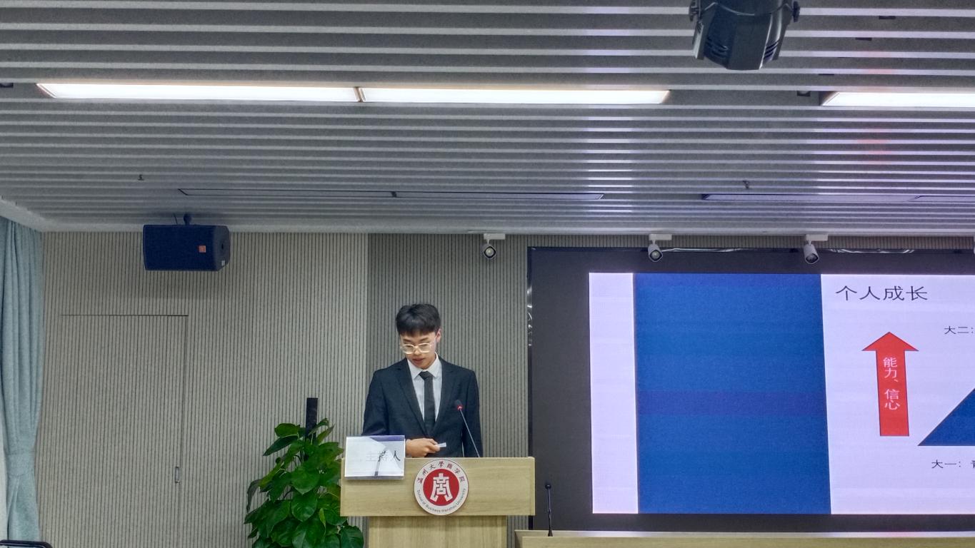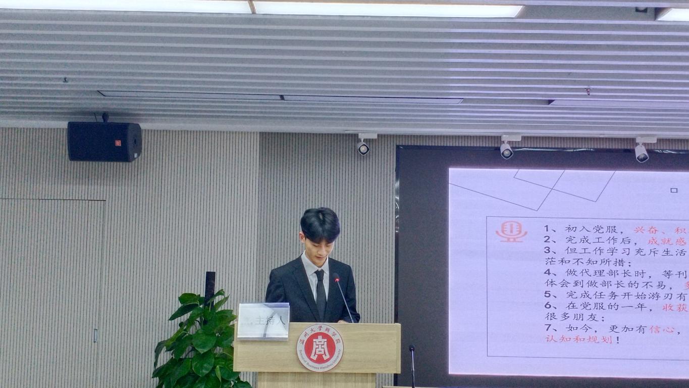 上一届党员服务中心主任朱宇哲、部长代表凌佳妮发言。他们分别总结了自己分管部门在过去一年中取得的工作成绩并分享了个人在工作中收获的心得体会。他们认为,学生干部在工作中应该要分清角色转变,明确自己身份;要有“大团队思想”,杜绝个人主义和小团队思想;要学会从“理念层”转换到“管理层”和“实践层”;对干事的管理要张弛有度,鼓励多于批评。