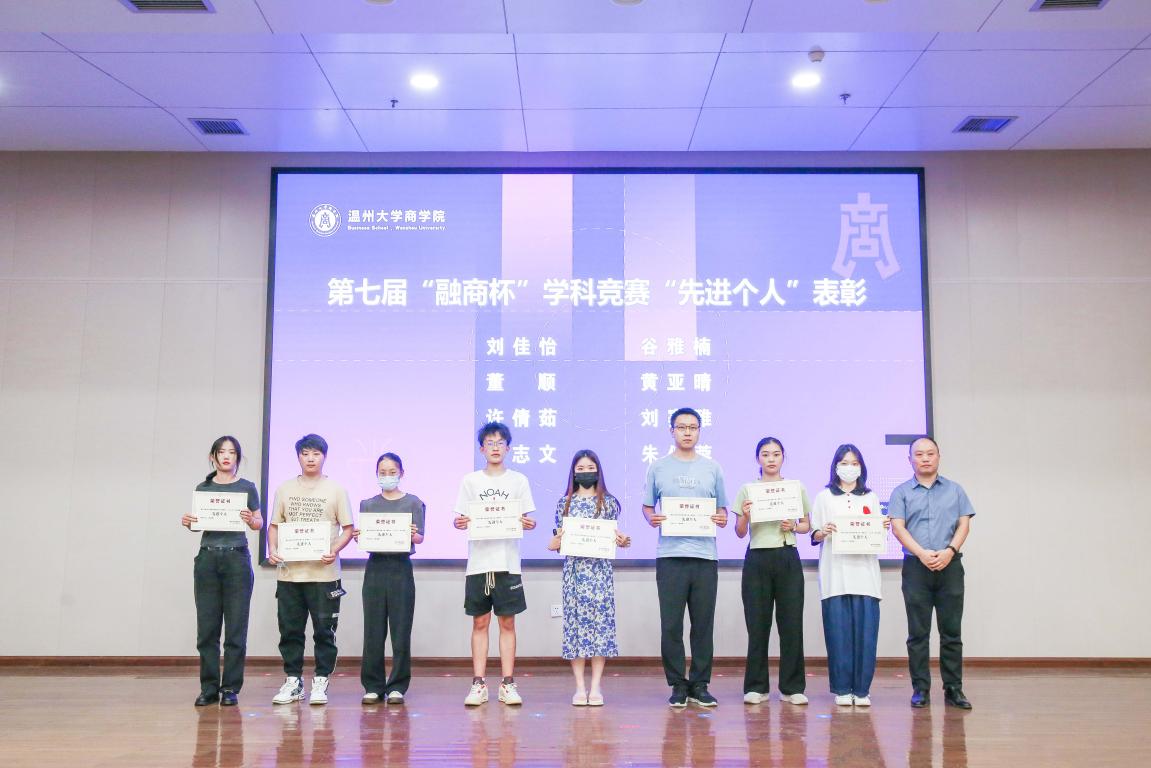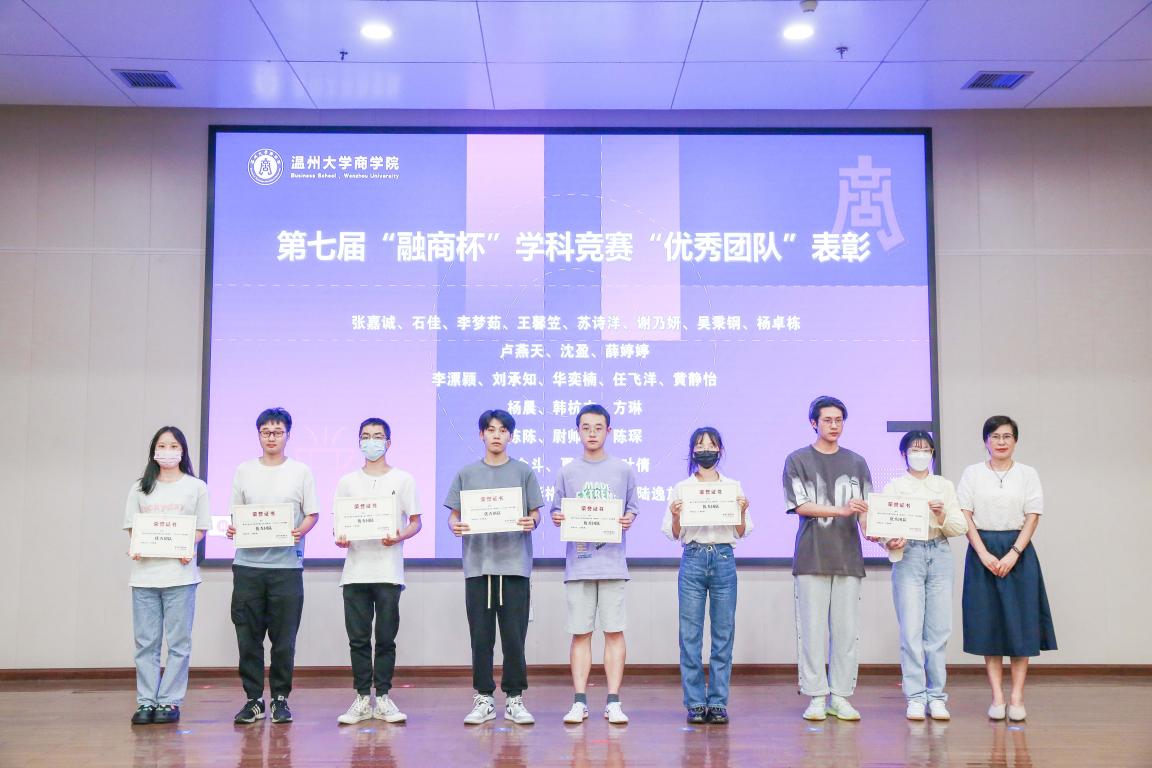 最后,金瑞老师宣读第六届“融商杯”学科竞赛“优秀指导老师”“优秀团队”“先进个人”获得者。胡振华院长、郑彩莲书记、唐华副书记分别为获奖者颁发证书和奖状。