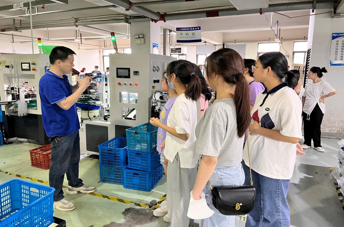叶春霞老师和郑慧老师带队与21国贸班级同学在业务总监张健和HR经理张鑫的陪同下一同参观了温州朗盛光学有限公司。温州朗盛光学有限公司是温州当地一家集设计、研发、制造和销售于一体的综合性眼镜制造商,与Safilo,Darigo等多家世界著名品牌公司建立了稳定合作的关系,为Levis,Under Armour,ESCADA等三十多个国际品牌提供产品的设计和生产服务,并获得眼镜十大品牌等荣誉。