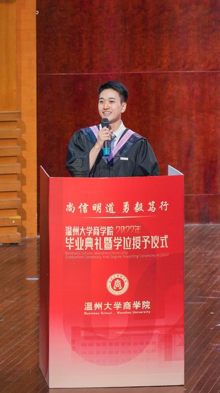 18级金融工程2班的张嘉诚同学作为毕业生代表发言,他回顾了在成人电影