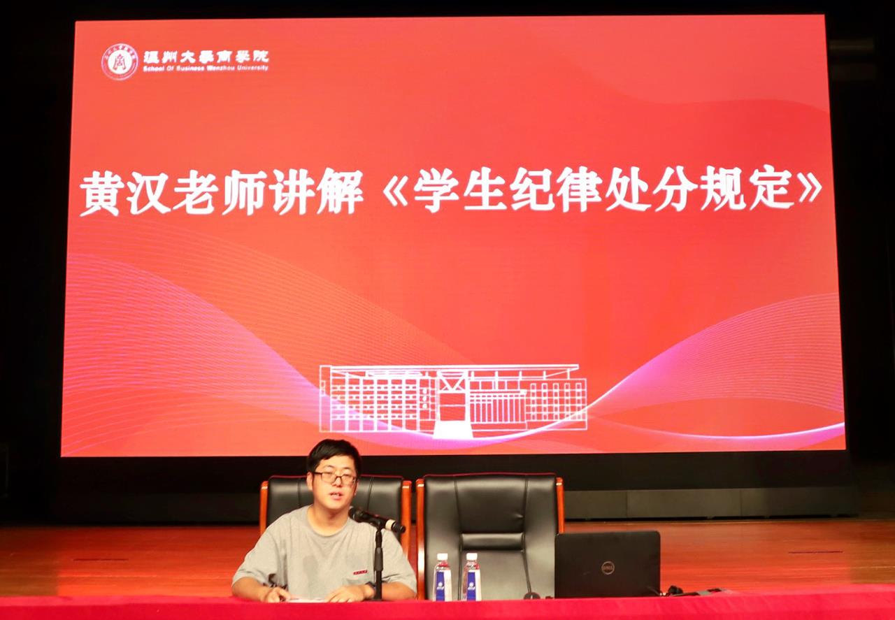 学生纪律处分规定》是《学生手册》的重要组成部分,是对学生行为进行约束、管理、处罚的重要依据之一,每一位入学新生都应该准确理解《学生纪律处分规定》的各项规定。接着,黄老师带领新生学习手册规定相关重要内容,并且详细介绍了学生纪律处分流程、解除处分流程,纪律处分常见的问题和注意事项。最后,黄老师还介绍了学院考研相关工作,学院一直高度重视应届毕业生考研工作的开展,在思想、学习和生活等多个方面为考研学生提供指导和帮助,并通过打造“考研样板间”的示范效应在学生中积极营造浓郁的学习氛围,推进学院优良学风建设。