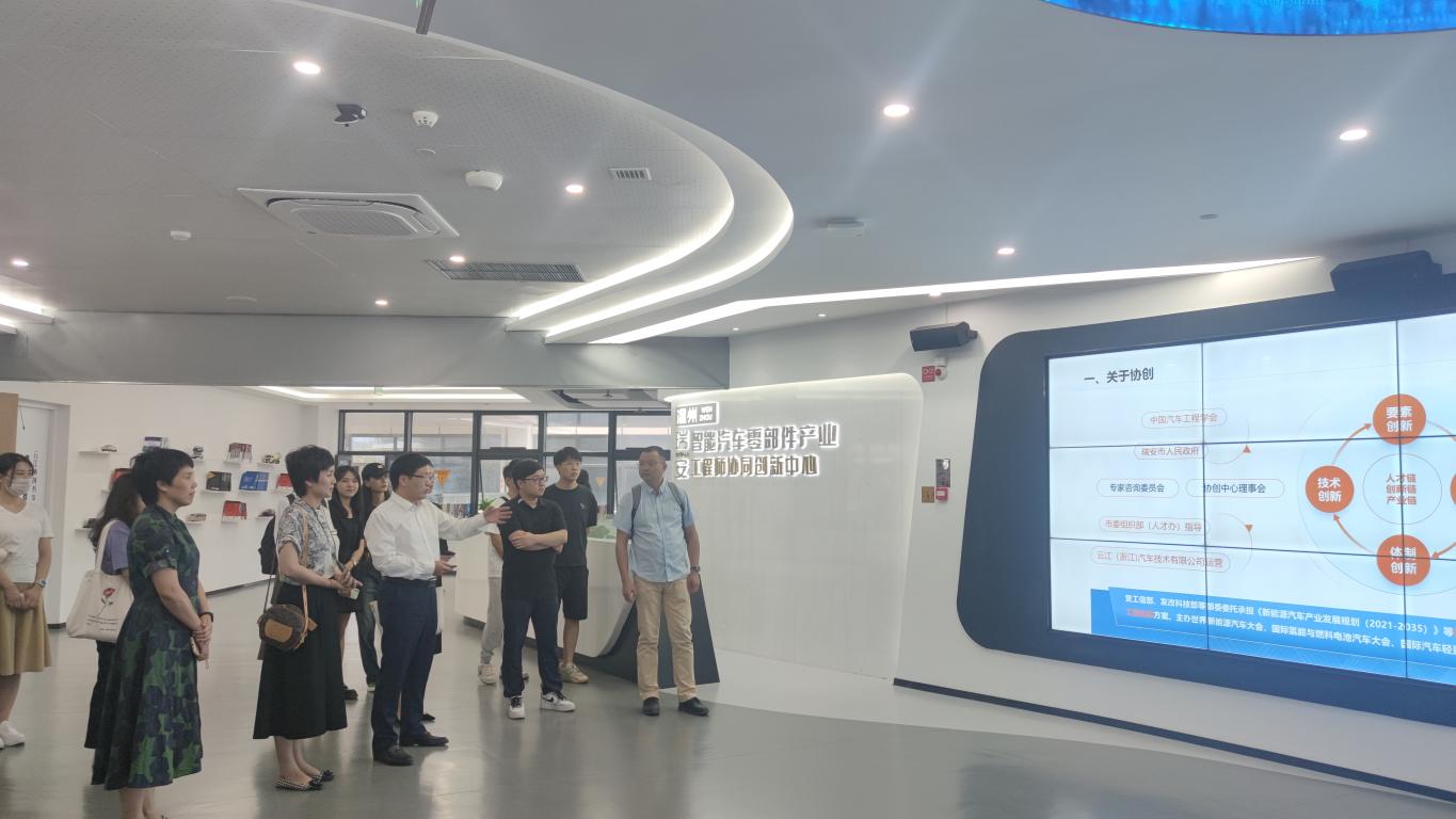 瑞安研究生院。温州(瑞安)智能汽车零部件工程师协同创新中心的工作人员为师生讲解了瑞安的历史底蕴、经济发展以及科创成果,介绍了瑞安的科创板图,并详细讲述了汽车等高端产业制造企业,以“一芯一轴三区“为高新技术产业发展格局,立足产业链,打造创业链。此外,协创中心主任张国祥还为同学们讲解了协创体系、专家智库、重点工作及科研成果等。