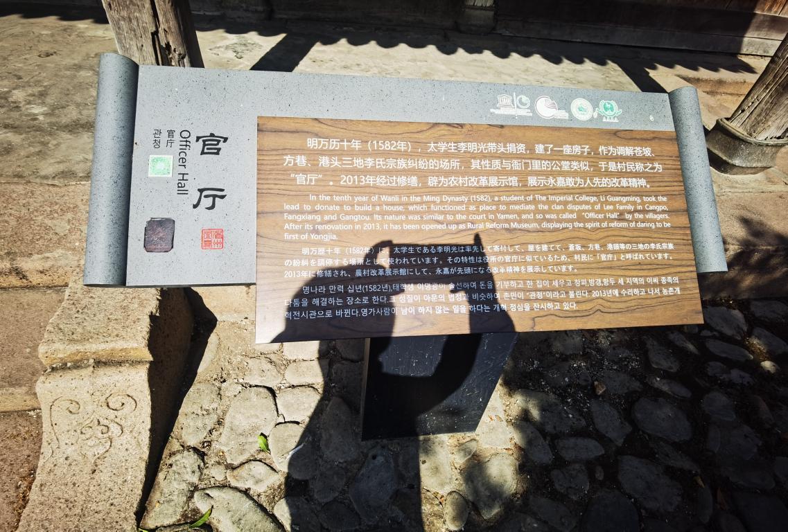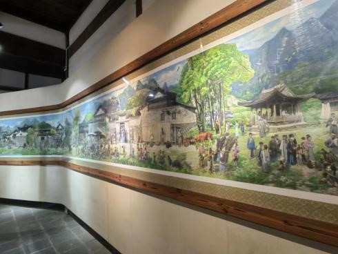 我们穿梭于中国农村改革馆、昆曲博物馆、蕙风轩美术馆、林曦明画馆等各具特色的八个文化展馆,在这里,我们可以细读永嘉古村文化、耕读文化、民俗文化、宗祠文化、昆曲文化等传统文化,体验山水与文化交融、传统与现代共存的古村落。在这里我们体会到馆内的苍坡版“清明上河图”制作精致,画的栩栩如生。