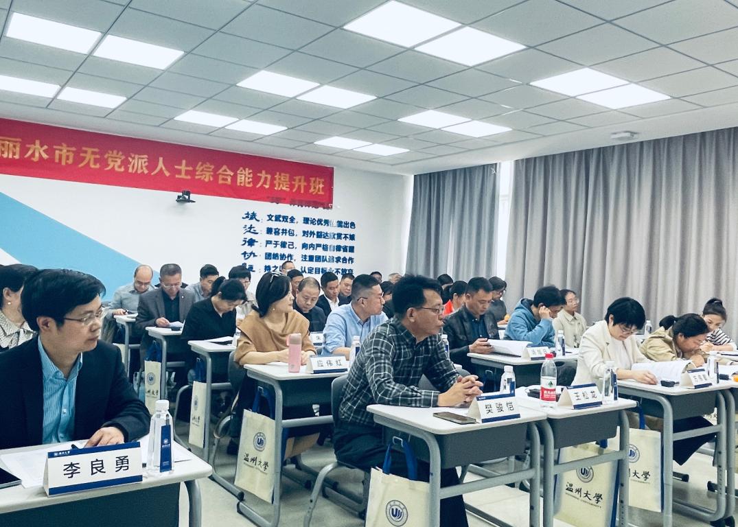 北校区北2-405教室顺利举行。培训为期3.5天,丽水市无党派人士共计35余人参加了此次培训。内容包括无党派人士综合素养提升、基本理论与政治制度、市情研究与建言咨政、二十大工作报告解读等。培训结合专题讲座、课堂授课、实践参观、互动交流等形式。