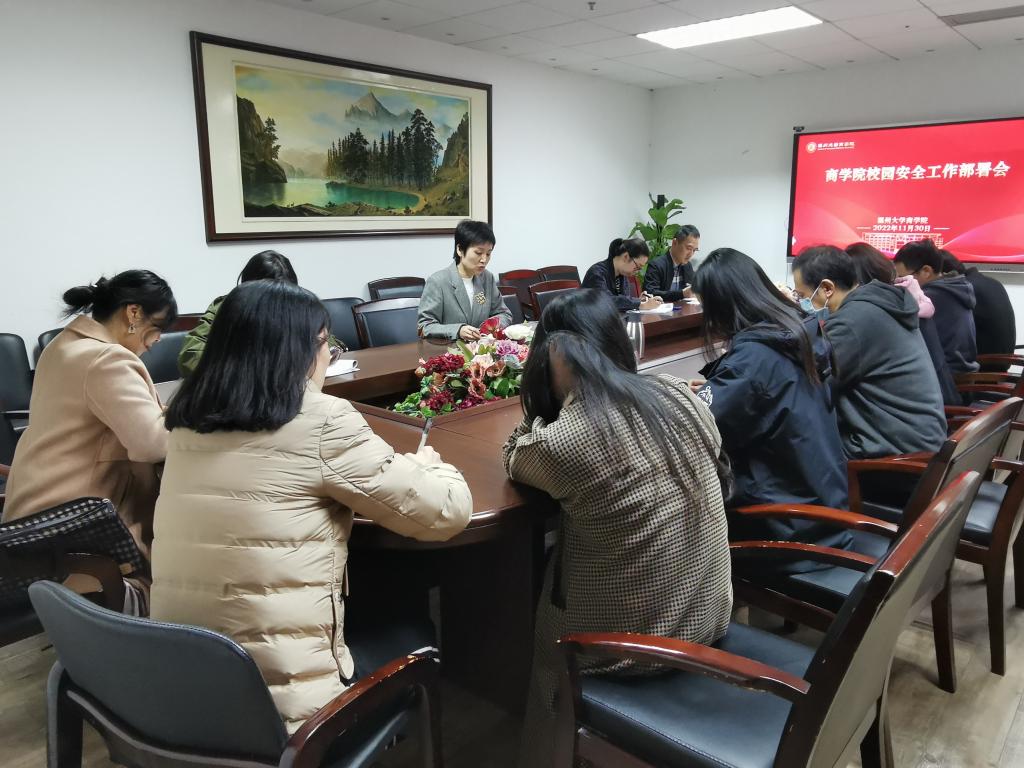 在商院楼A222会议室召开校园安全工作部署会议,会议由学院党委书记李密主持,办公室、教学科、学生科、实训中心、金融研究院、温州人经济研究中心相关工作人员参加会议。