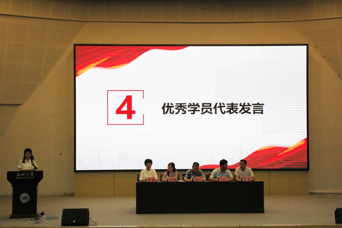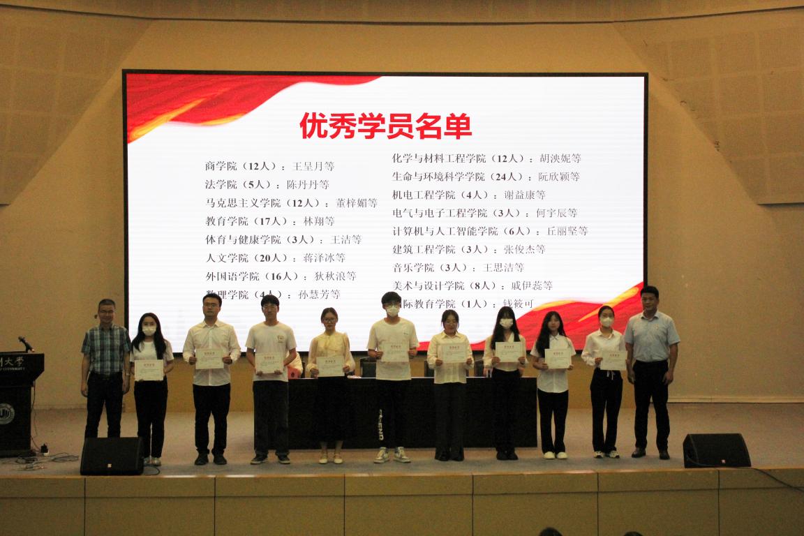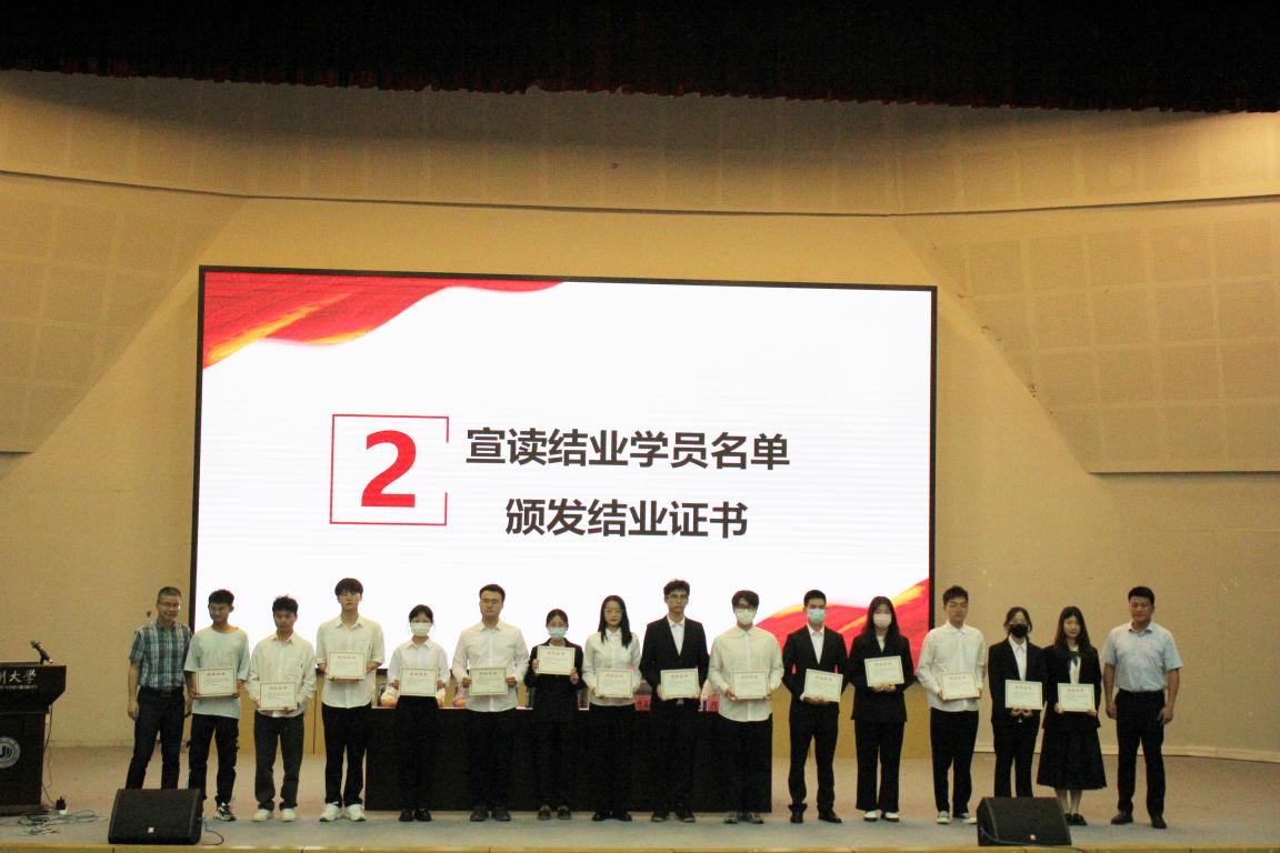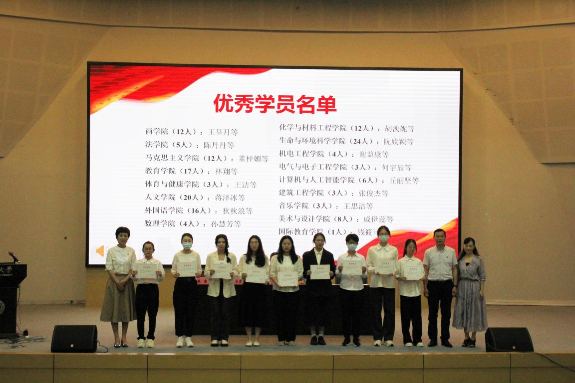 党委书记、分党校校长李密,教育学院党委书记、分党校校长何毅,外国语学院党委书记、分党校校长杨丽君,电气与电子工程学院党委书记、分党校校长李方强,美术与设计学院党委书记、分党校校长叶正飞,各学院党建工作老师以及619名党员发展对象。结业典礼由成人电影