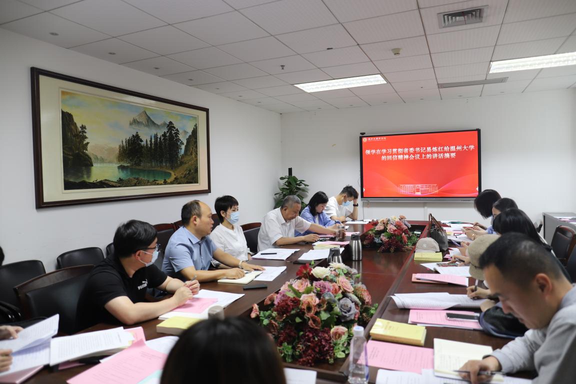 的回信精神会议”上的讲话摘要,并强调了三点,一是要进一步提高政治站位,深刻领悟回信和讲话精神重要意义;二是要进一步锚定目标定位,抢抓机遇促进学校能级跃升;三是要进一步增强使命感,加快推进学校内涵式高质量发展。同时,她鼓励全院师生要在深入实施“八八战略”、强力推进创新深化改革攻坚开放提升,奋力打造中国式现代化教育示范省和“续写温州创新史、走好共富路”的伟大实践中贡献温大力量。