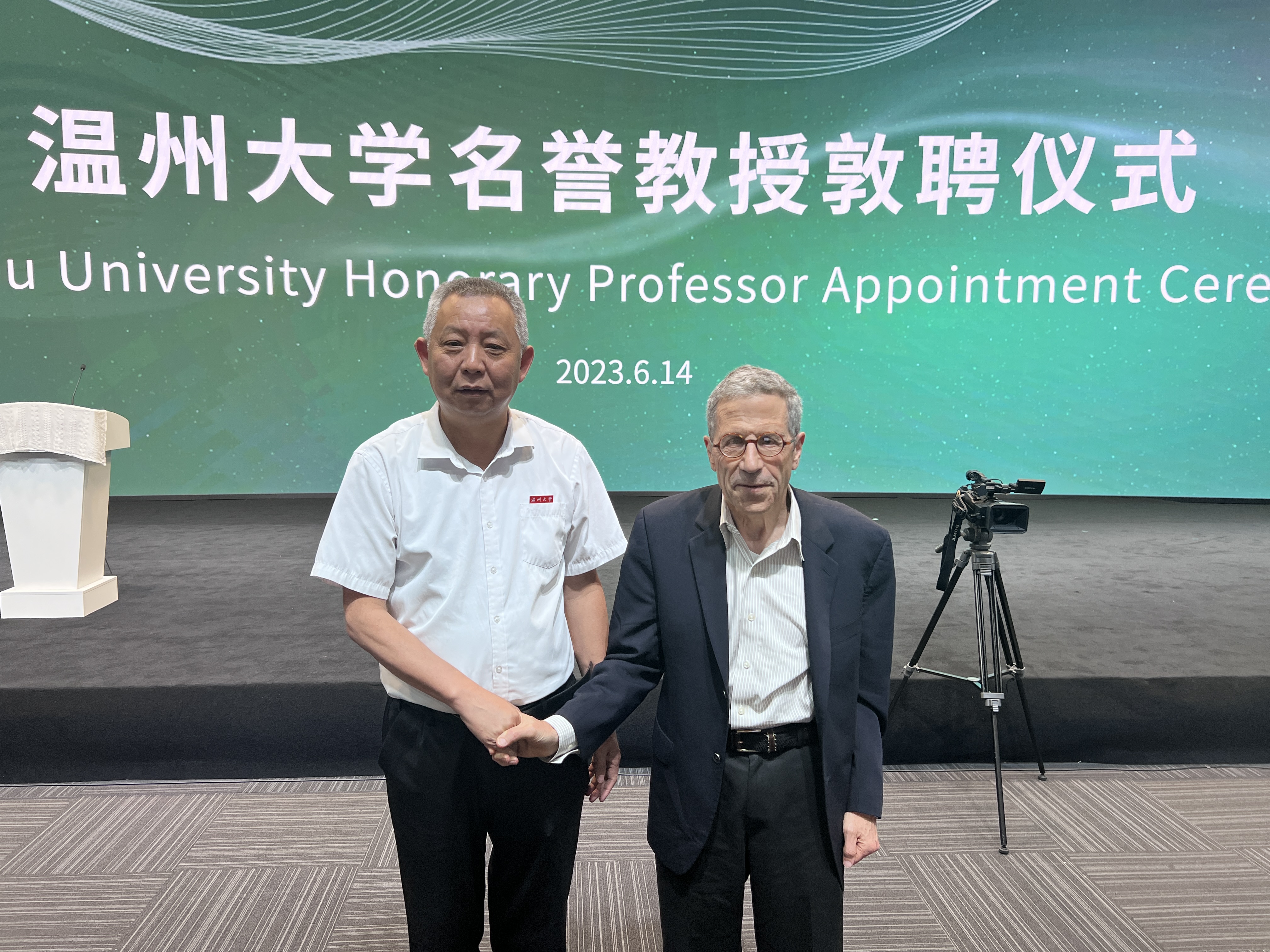 名誉教授仪式在温州文昌创客小镇城市客厅举行。温州市委副书记、市长张振丰,温州市政府副市长陈应许,龙湾区领导周一富、夏禹桨等出席。敦聘仪式由校党委书记张健主持。