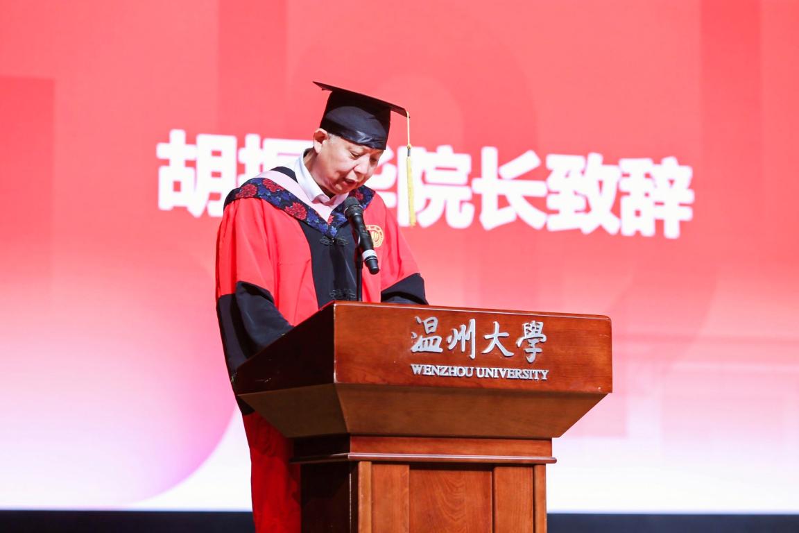院长胡振华教授向全体毕业生们表示了由衷的祝贺和美好的祝福,向多年来为学生们的健康成长倾注大量心血的老师们和家长们致以衷心的感谢和崇高的敬意。毕业之际,胡院长对即将扬帆起航的所有毕业生们提出了三点叮嘱: 第一,希望同学们坚定信念、脚踏实地,用担当激扬青春,第二,希望同学们自信果敢、不惧风雨,用奋斗成就未来,第三,希望同学们勇于探索、合创未来,用创新拥抱世界!