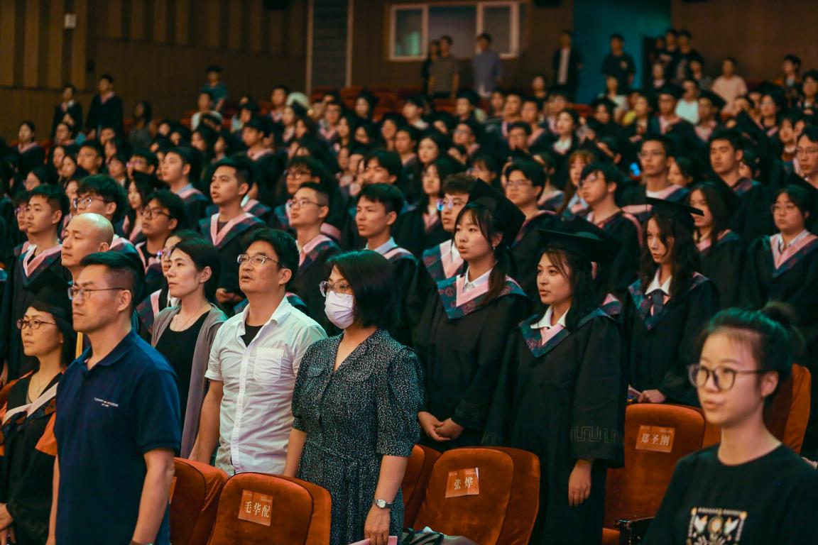 本次毕业典礼暨学位授予仪式在全体起立奏唱国歌中拉开序幕。