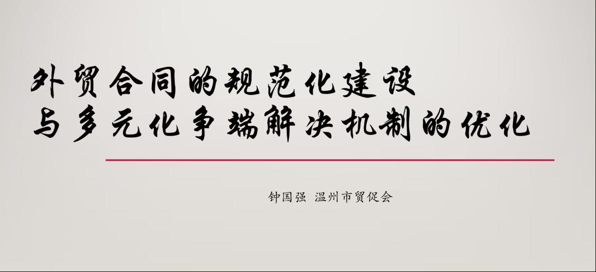 22级国贸本科专业的专业认知见习课迎来了第一次讲座。本次讲座邀请的是温州市贸促会的钟国强主任,他给同学们带来了一场以“认识外贸合同的规范化建设与多元争端解决机制的优化”为主题的线上讲座。
