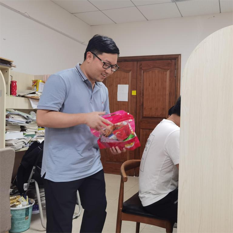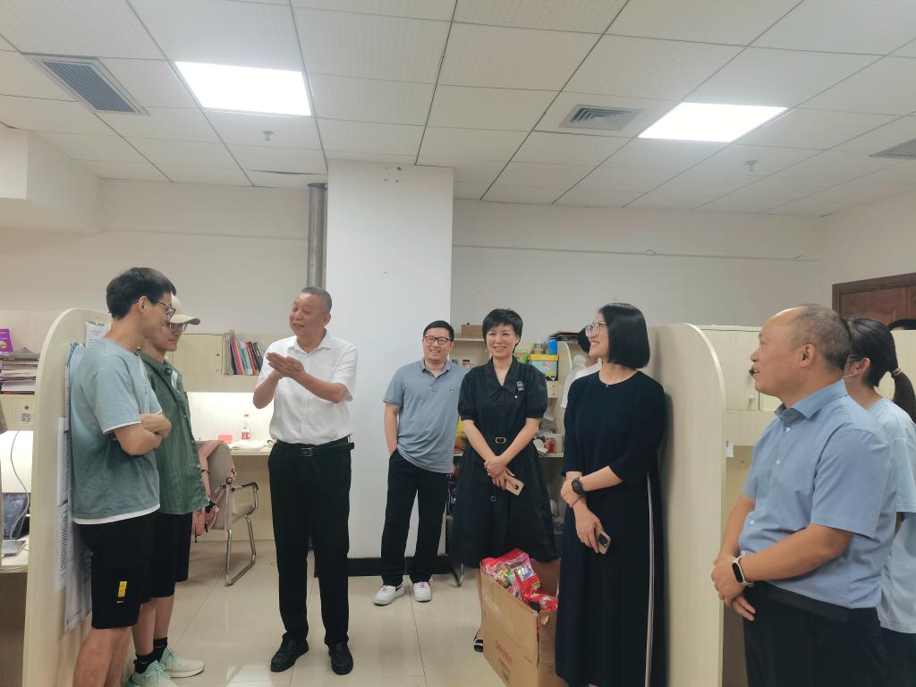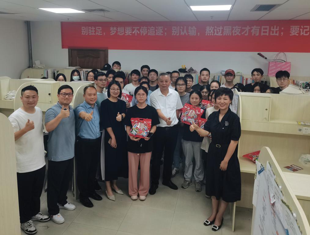 院长胡振华、党委书记李密、副院长陈文芝、党委副书记唐华、院长助理方嘉奇及学生科辅导员代表等一行人来到716考研样板间走访慰问暑期考研留校学生,与同学就考研备考情况进行了交流,了解同学们的学习、生活情况以及存在的困难,并给同学们送去了一份份温馨的好运加油礼包。