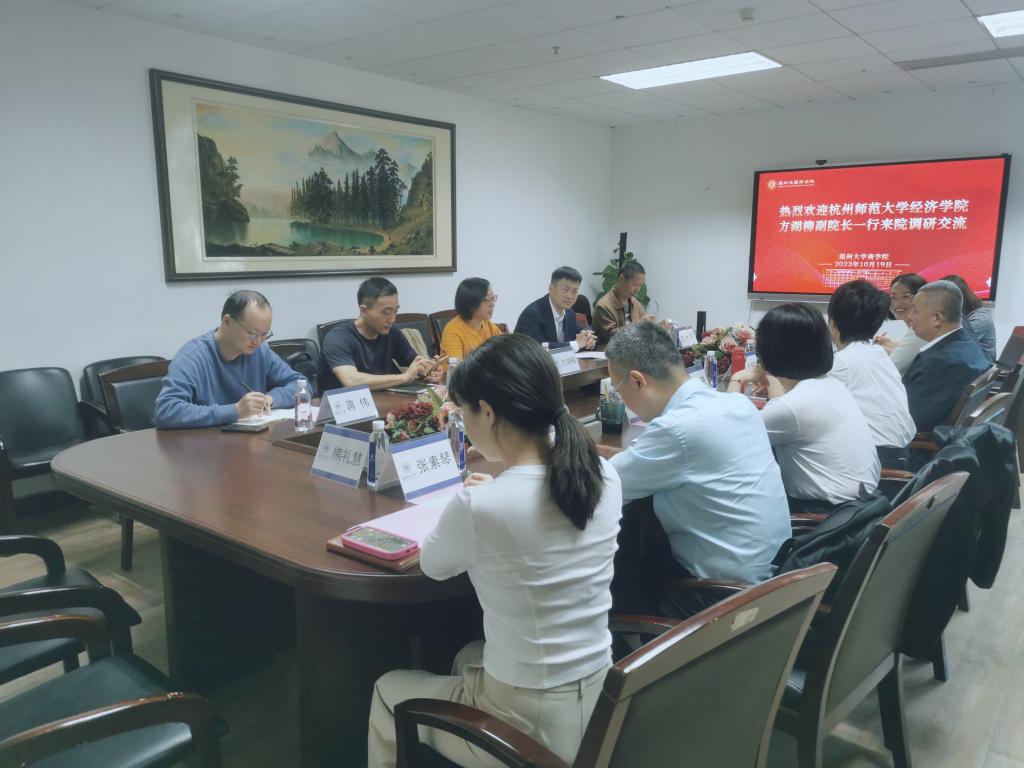 2023年10月19日的早上8点30分,杭师大经济学院的副院长方湖柳、院长助理曾绍龙、办公室主任张李铭、金融系主任卢锐和蒋伟博士一行莅临成人电影