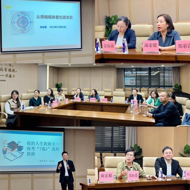 本次沙龙分为两个单元进行,陈宏毅老师以“从荣格视角看生涯发展”、朱启鑫老师以“我的人生我做主——高考7选3选科指南”为主题作专题分享。分享环节充分展现了活跃的学术思维和已有成果积累,并进行了深入交流和指导。