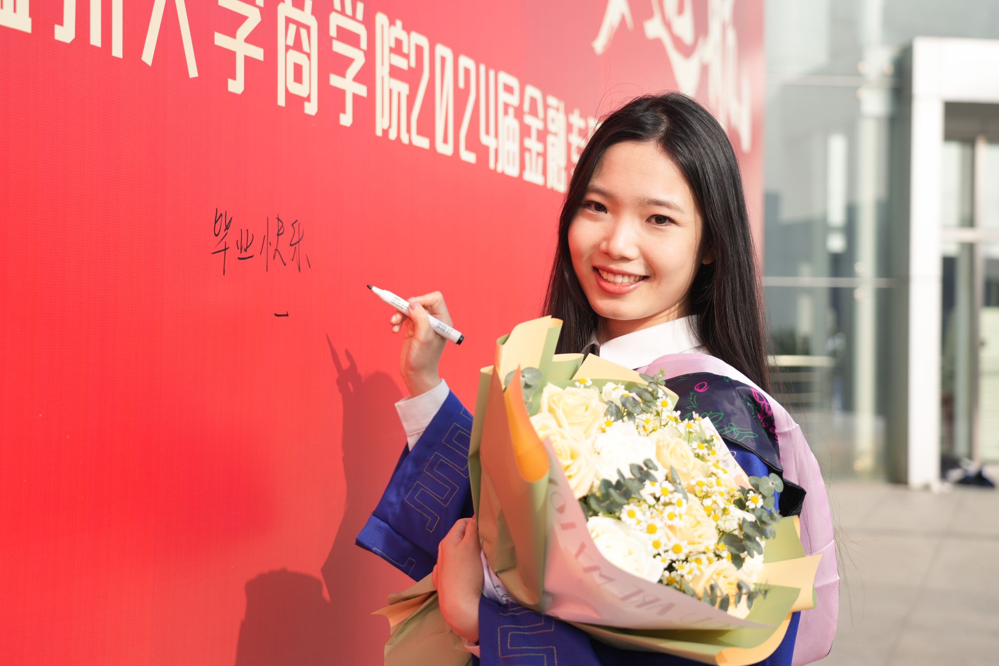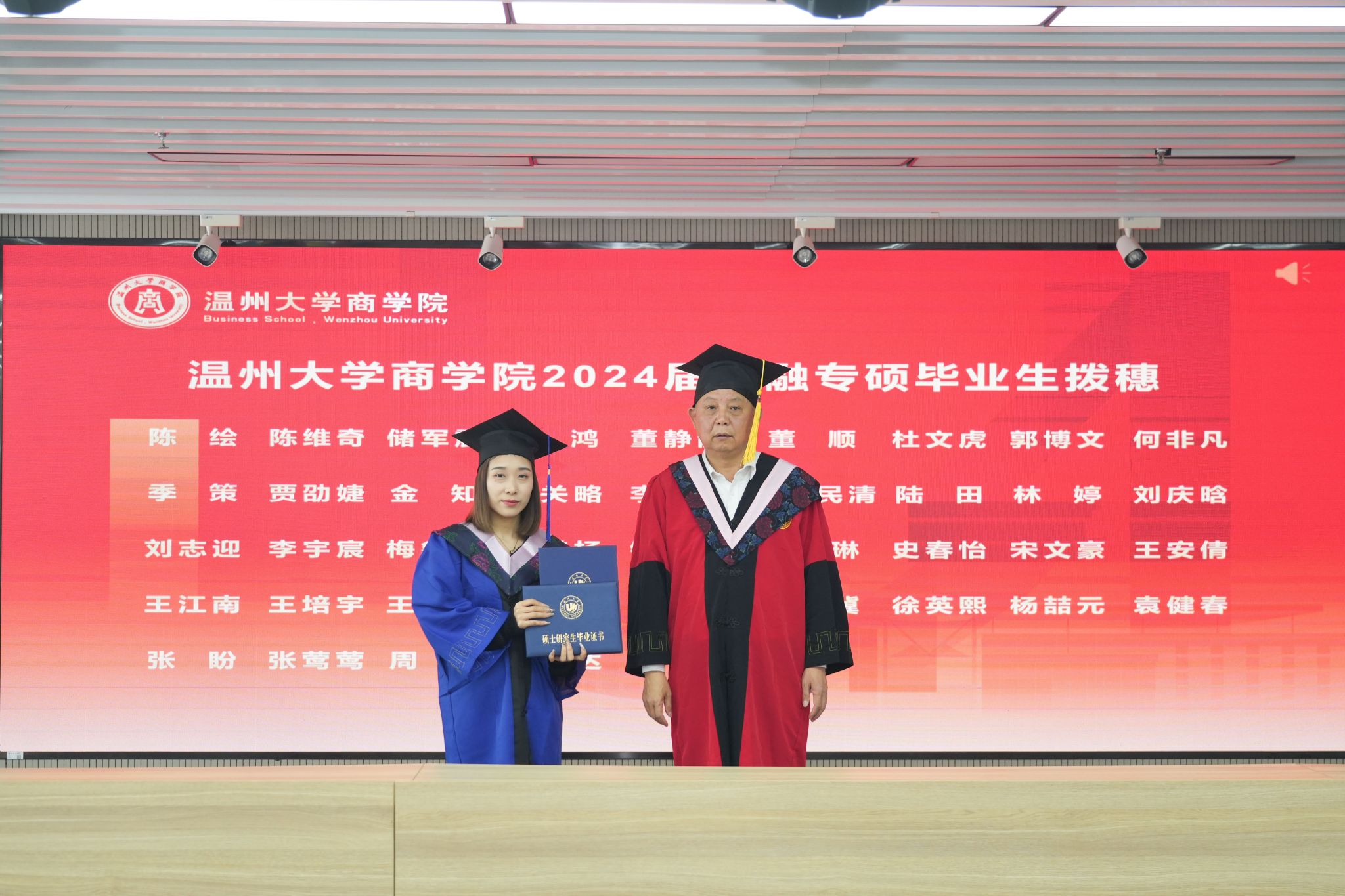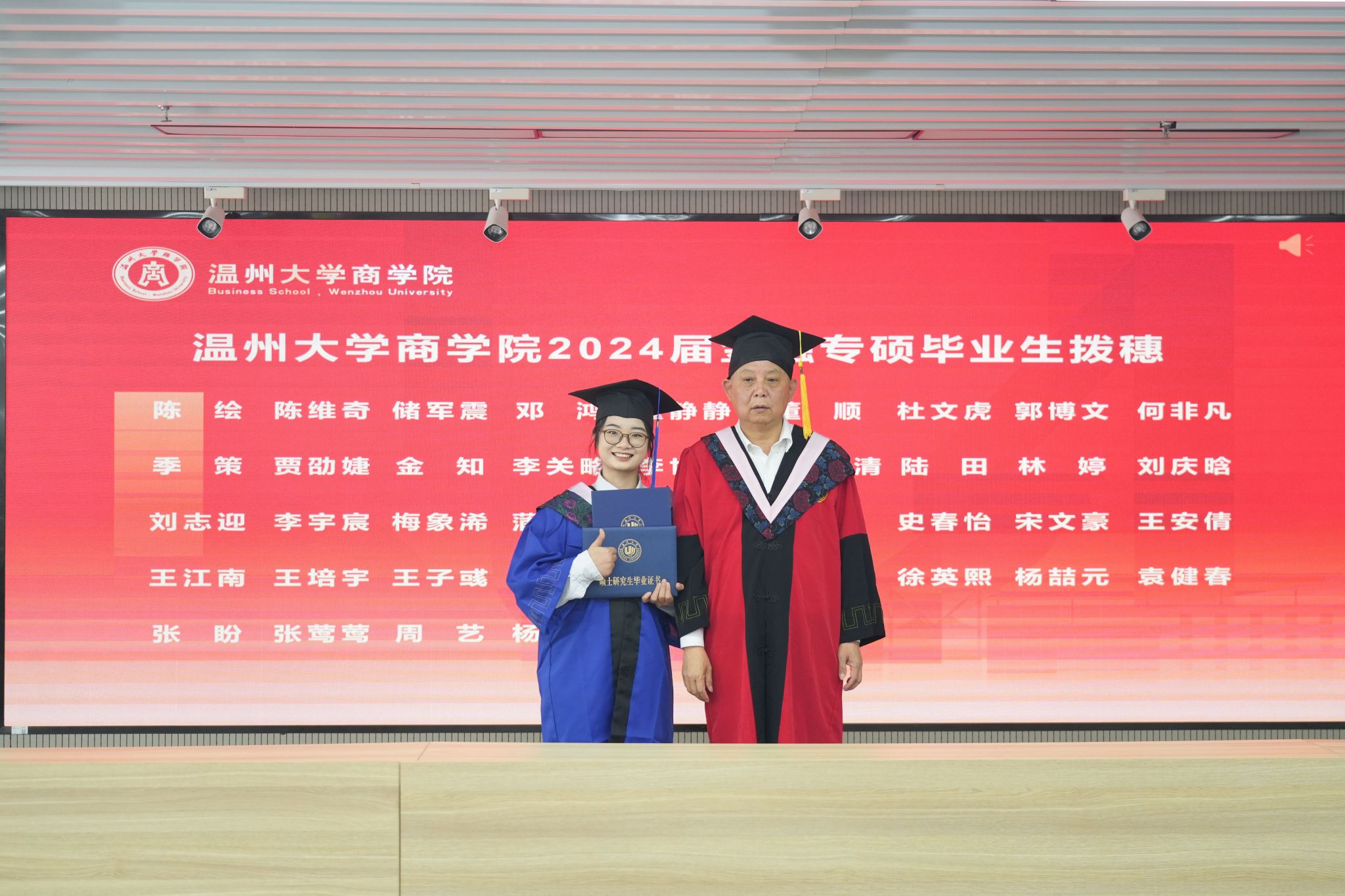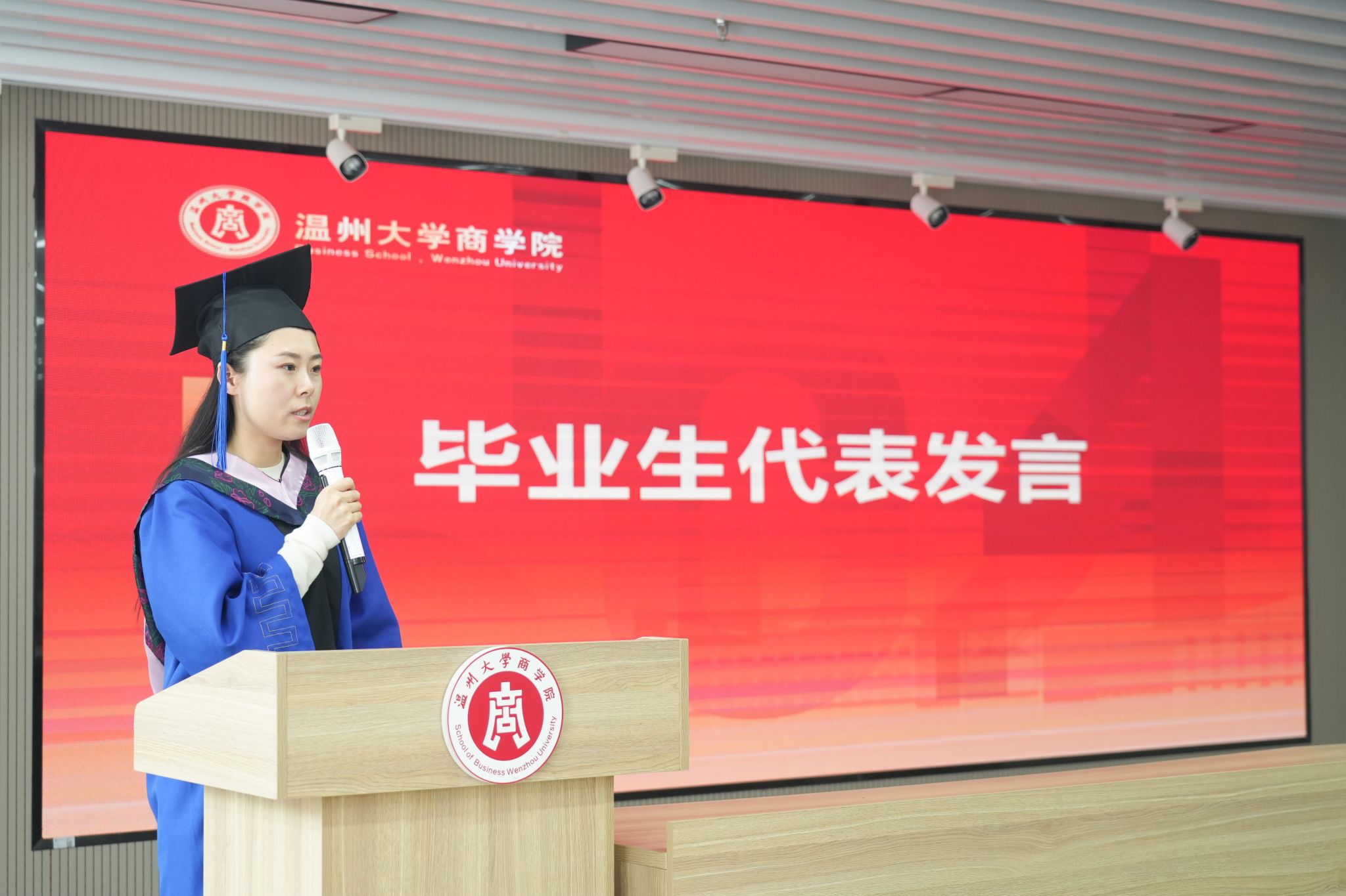 提供的优越求知平台和学习环境,免费开放大量的讲座和优秀的公开课,还有大师级别的老师传道授业解惑。老师们深入浅出的讲解,让学生们更加深刻的理解学术的精髓,同时学院还聘任行业大佬担任同学们的校外导师,为学生提供实习机会,分享行业经验。最后,她再次感谢学院老师们这两年多的悉心教导和精心栽培,感谢同学们给予的陪伴和支持。在未来的日子里,她祝愿各位老师硕果累累,桃李芬芬,祝愿温大蒸蒸日上,祝愿同学们前程似锦。