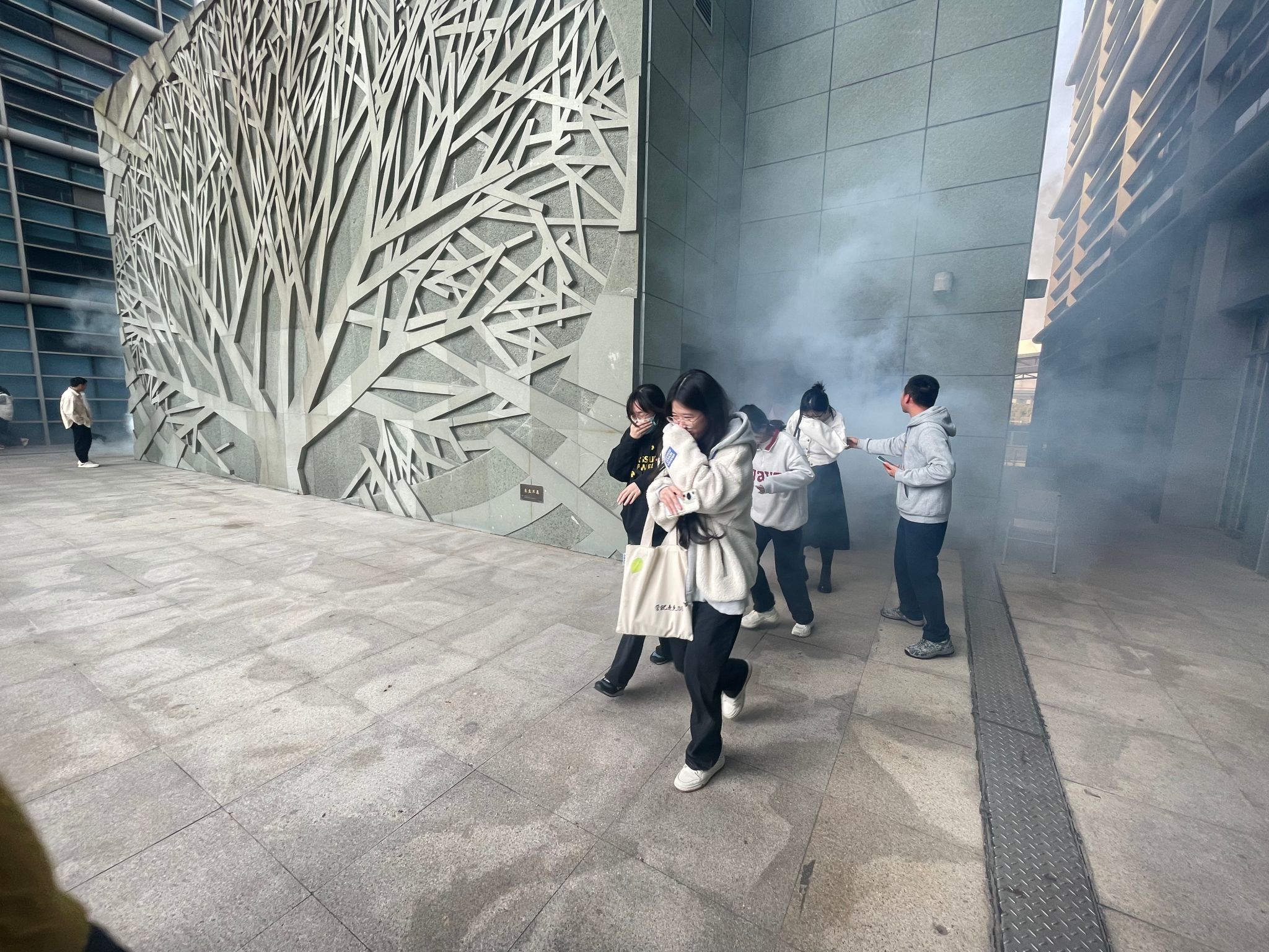 组织师生在北校区信息楼开展火灾疏散逃生演练。