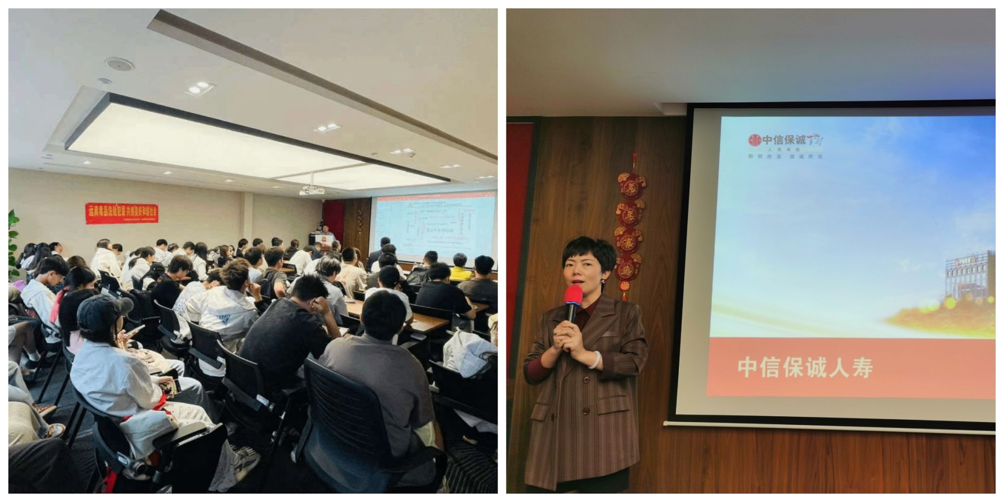 紧接着,中信期货的林伊凡总经理与中信保诚温州中心支公司的业务总监罗红梅女士接力登场,为在场学生详细剖析了两家公司的核心业务范畴、日常工作内容、薪酬福利体系及入职要求等关键信息。林伊凡先生深刻解读了期货市场的动态与中信期货在行业内的独到优势,而罗红梅女士则生动展示了中信保诚在保险业的深厚底蕴与广阔的职业发展空间。业务范围、工作内容、薪资待遇、福利情况以及准入门槛等等关键信息的分享,使得同学们获得了第一手的职业规划信息,让他们对自己未来的金融职业生涯有了更加明确的方向与实际的期待。