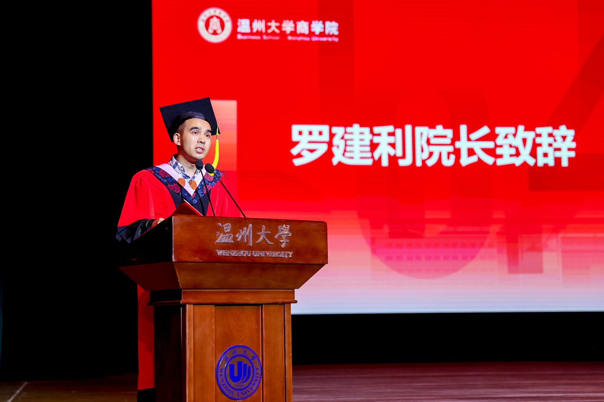 院长罗建利以满怀激情的言辞,向全体毕业生们表达了深深的祝贺和诚挚的祝福。他同时向那些为学生们的成长默默奉献、倾注心血的老师们和家长们,致以最真挚的感谢和崇高的敬意。在当今世界风云变幻、时代挑战与机遇并存的大背景下,罗院长对即将踏上新征程的毕业生们提出了三点殷切的叮嘱:第一,他殷切期望同学们能够为中国式现代化肩负起时代赋予的重任,争做引领新质生产力的先锋,展现出年轻一代的担当与力量。第二,他鼓励同学们要激扬青春的斗志,志存高远,携手共进,共同构筑未来的辉煌篇章,让青春在奋斗中焕发出绚丽的光彩。第三,他寄语同学们要点亮创新的明灯,照亮未来探索星辰大海的征途,砥砺前行,不畏艰难,勇往直前,以创新为引,开创更加美好的未来!