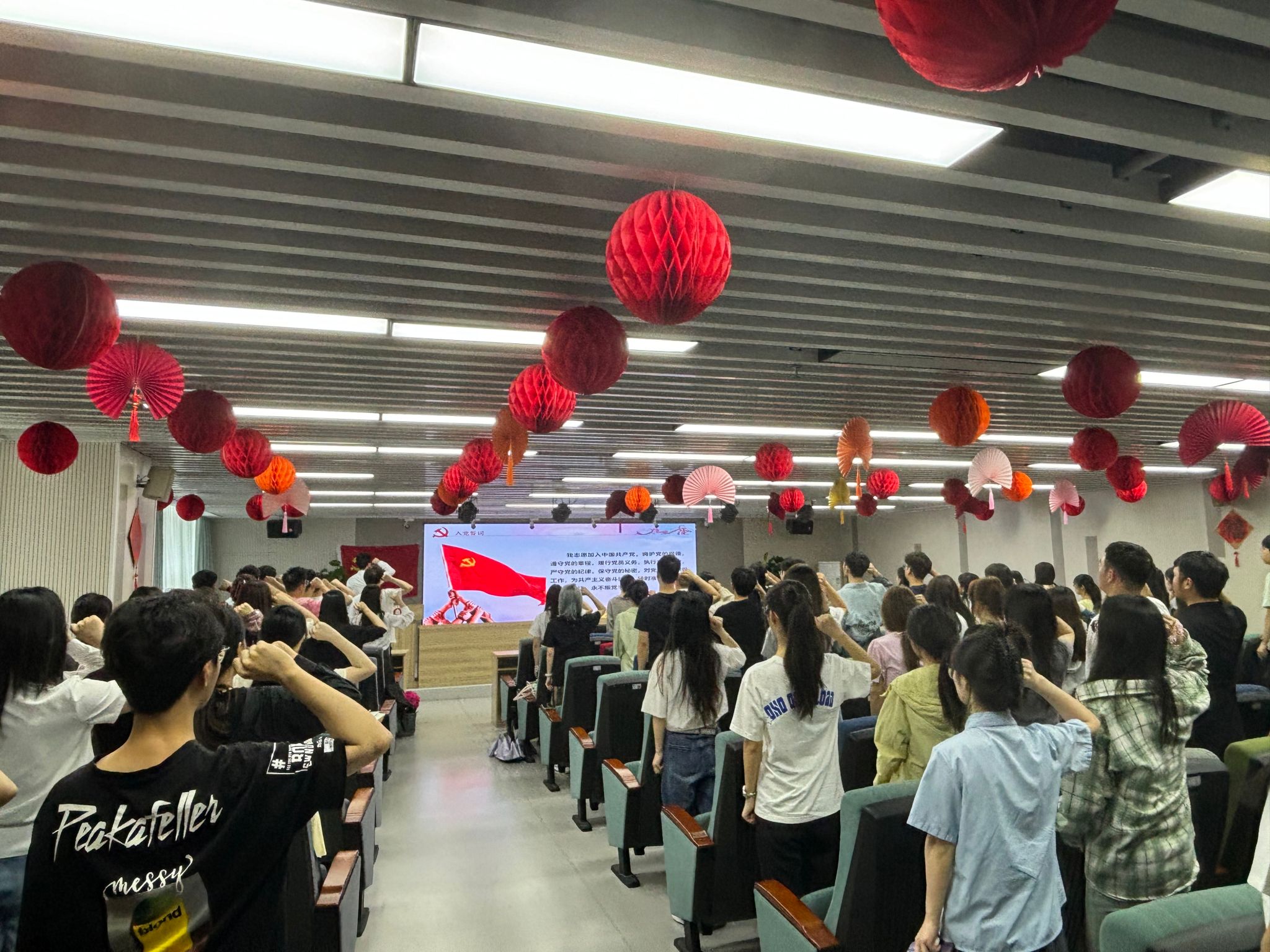 在庄严的国歌声中,大会拉开了序幕。毕业生党员代表黄政锋同志带领与会师生党员重温入党誓词,提醒每位毕业生党员时刻牢记党员身份,永葆政治本色。