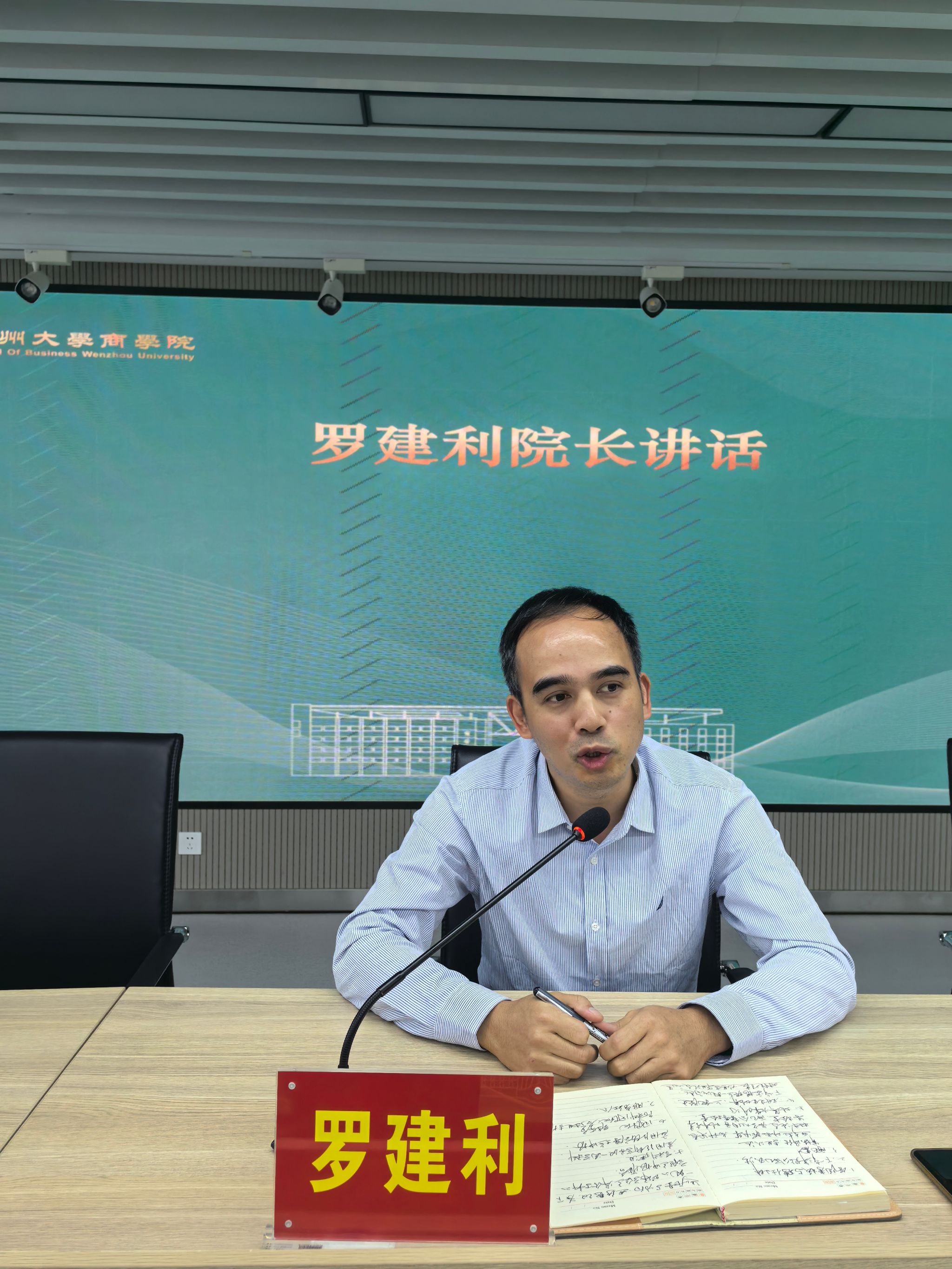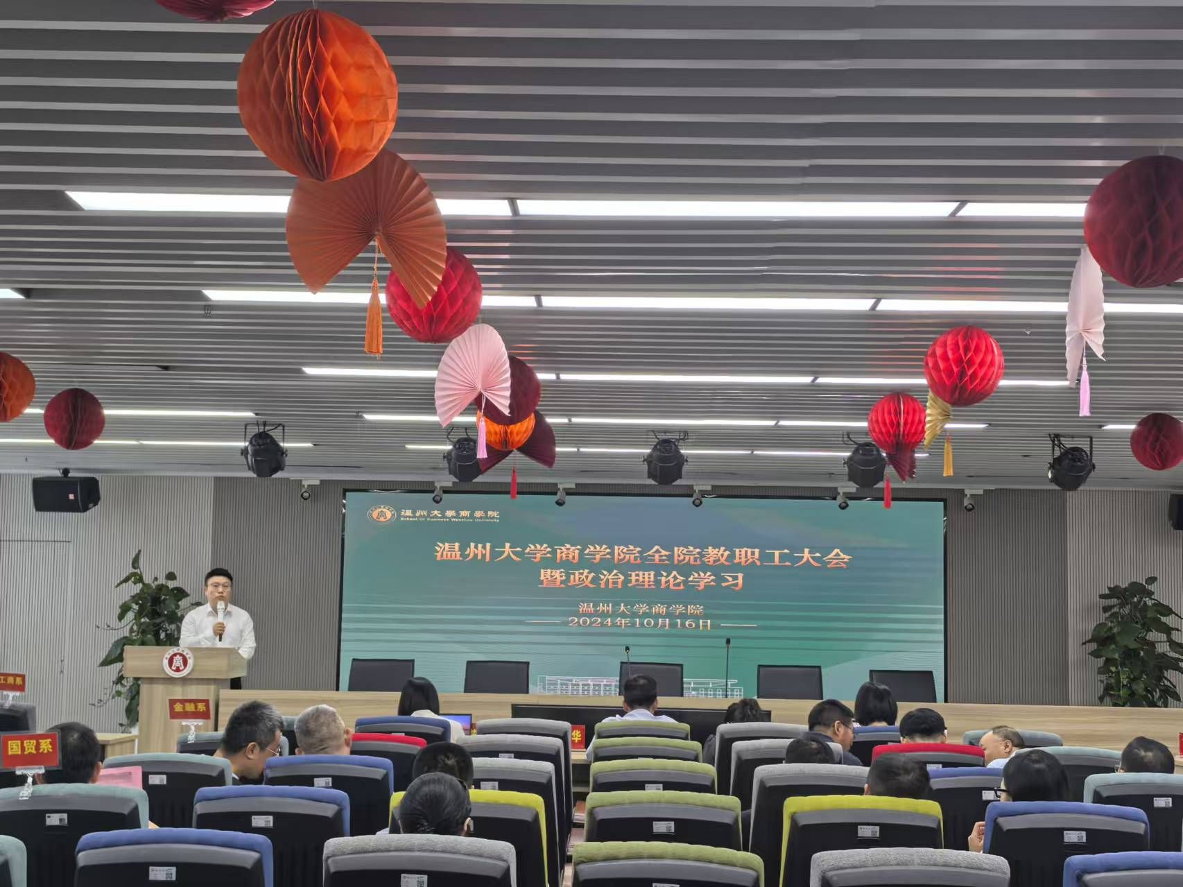 在商院楼A226仲辉商道讲堂举行新学期教职工大会暨政治理论学习,会议由党委书记唐华主持,学院全体教职工参加。