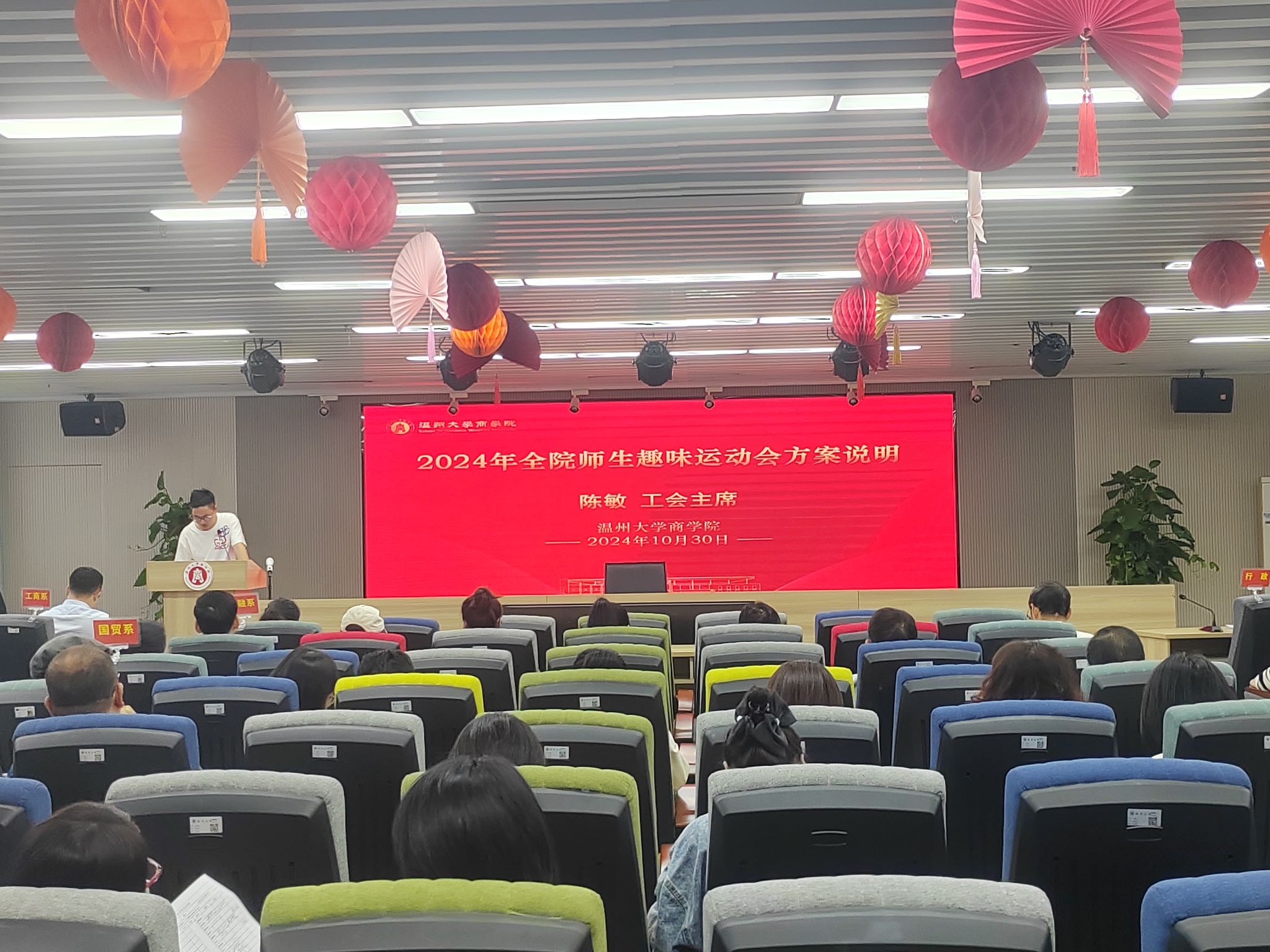 师生趣味运动会向各位老师进行情况汇报,希望各位老师积极报名并在参赛过程中要注意安全。