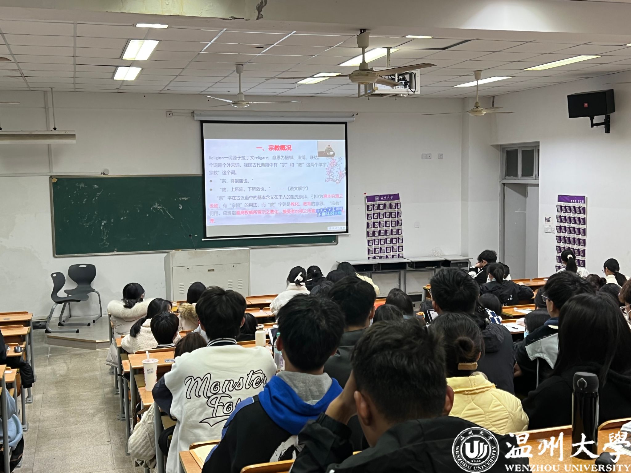 为引导大学生树立马克思主义宗教观,提高学生正确认识和对待宗教问题的能力,10月16日,我院面向全体新生开展了马克思主义宗教观教育“当代大学生如何正确认识宗教”。