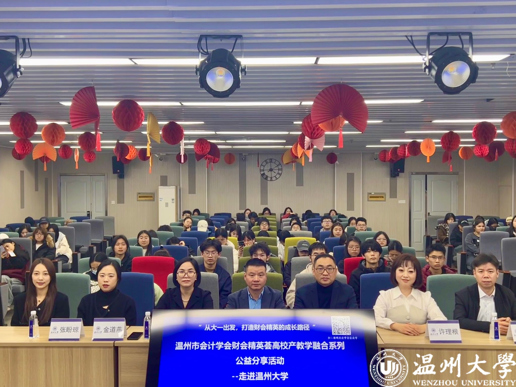 温州市会计学会副会长、财会精英荟荟长章世存出席活动并致辞。他回顾了该系列活动三年来的成果,强调校企联动是培养应用型人才的关键,期待通过经验分享激发更多创新思维。