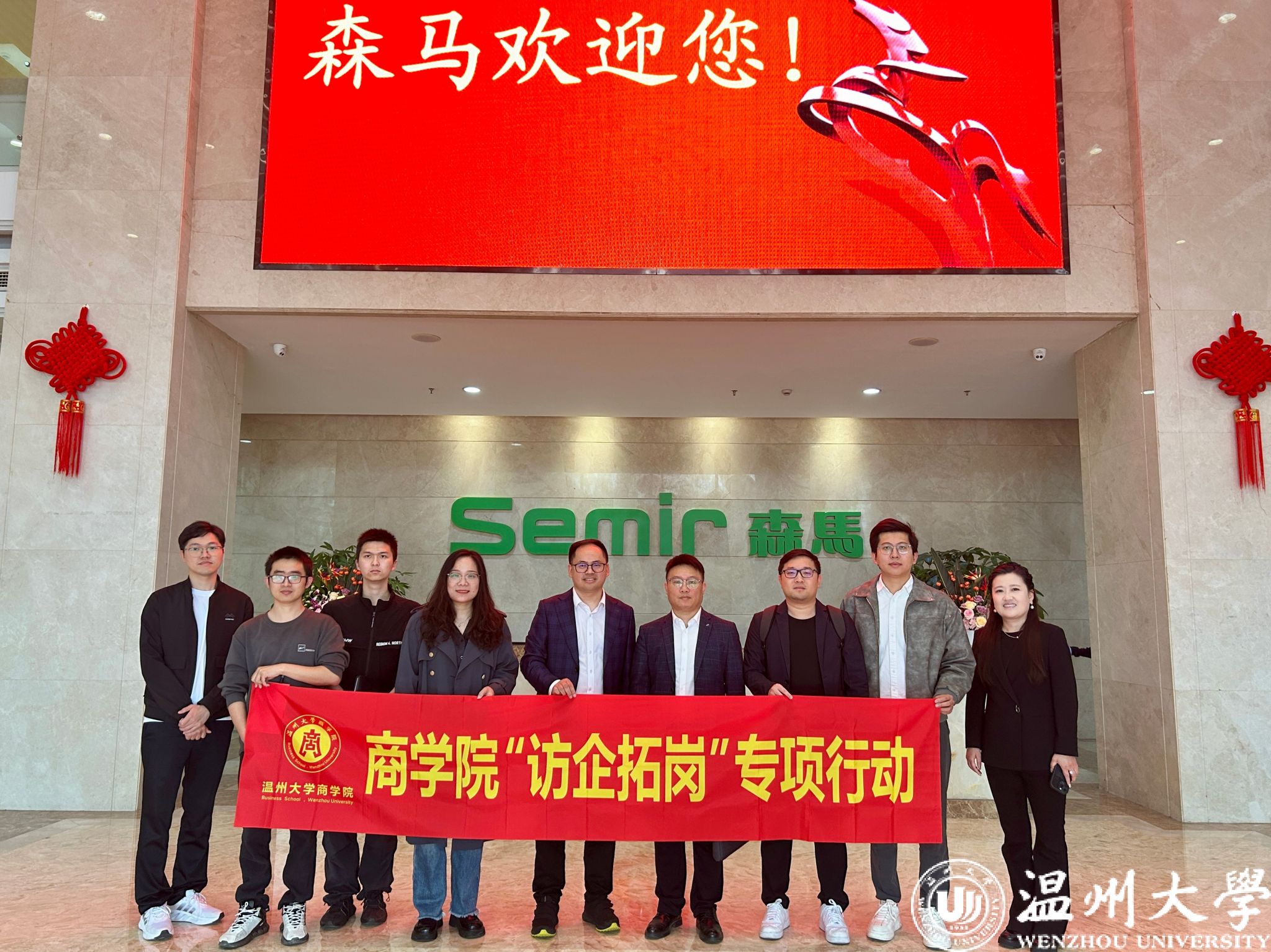 参观结束后,双方进行了座谈交流。座谈会上,赵小波校友详细介绍了森马集团。森马集团有限公司创立于1996年12月18日,总部位于浙江省温州市,是一家以多品牌服装服饰为主导产业、跨产业发展的综合性民营企业,现已拥有森马、巴拉巴拉、马卡乐、MARC O'POLO、Jason Wu、Hey Junior、Mini Bala、Asics Kids、梦多多小镇、森活之家、温州万象城等多个国内和国际知名品牌。集团秉承“小河有水大河满”的利他共赢文化,追求企业与合作伙伴、员工、社会的和谐共赢发展。其品牌口号“森立天地,马致千里”寓意着企业致力于为员工提供成长空间,打造具有马的精神的团队。