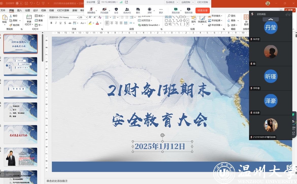 组织全院本、研各班级召开安全教育主题班会。本次班会重点围绕学习贯彻学校意识形态工作要求及国家宗教政策展开,旨在引导学生树立正确价值观,营造健康向上的校园文化氛围。
