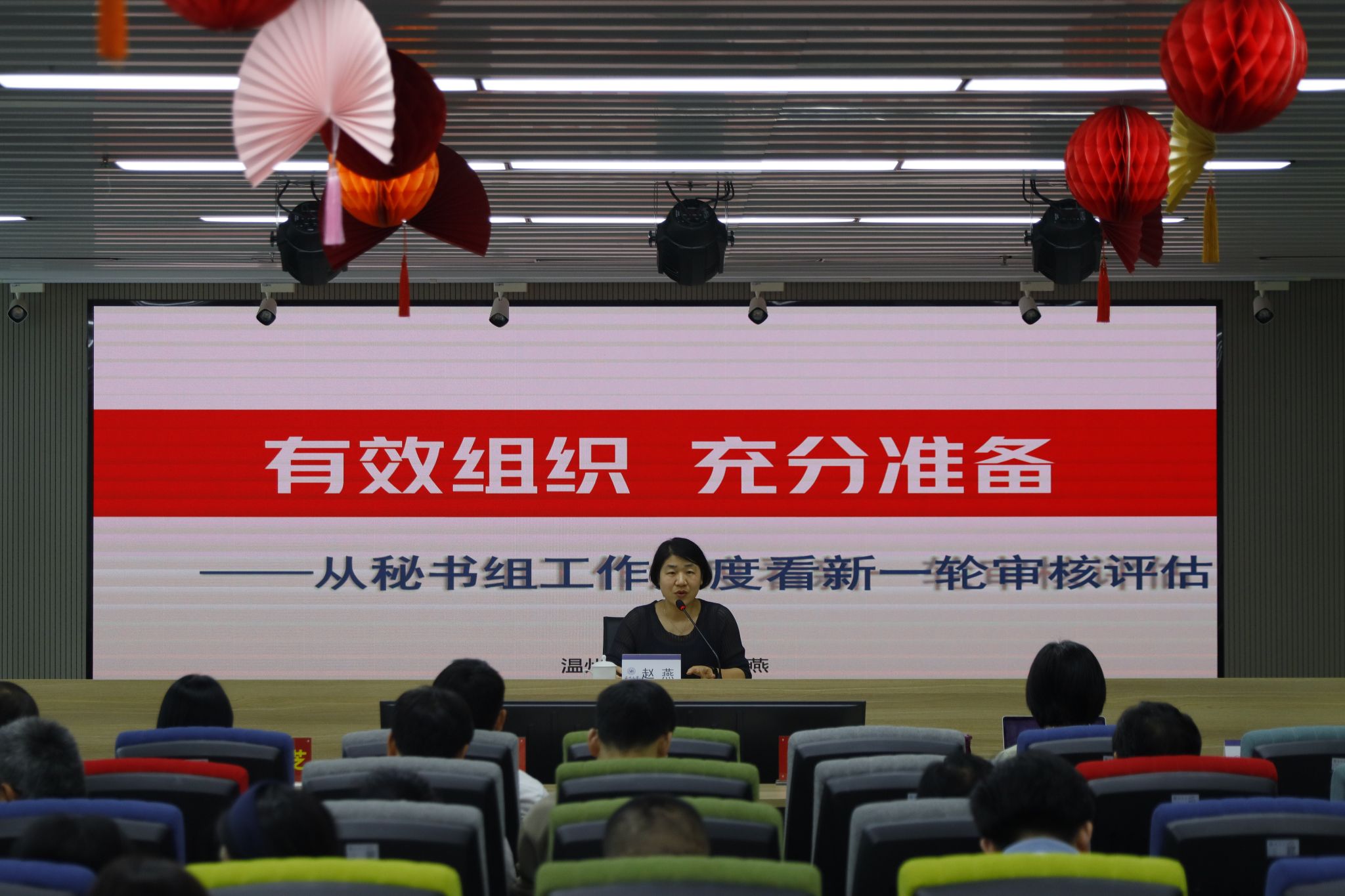会议伊始,学院邀请温州理工学院教师教学发展中心主任赵燕作《有效组织,充分准备——从秘书组工作角度看新一轮审核评估》专题讲座。赵燕主任从价值要义、工作总览、关键流程等方面系统解读了审核评估要点,重点剖析了自评报告准备、问卷调查实施、各类材料准备、专家考察活动及三次重要会议筹备等核心环节,为学院迎评工作提供了专业化的指导建议。王露副院长对学院预评估工作进行全面部署,明确了任务分工、进度安排和注意事项。罗建利院长讲话强调,全体教职工要统一思想、主动作为,以审核评估为契机,全面提升教育教学质量与管理水平。