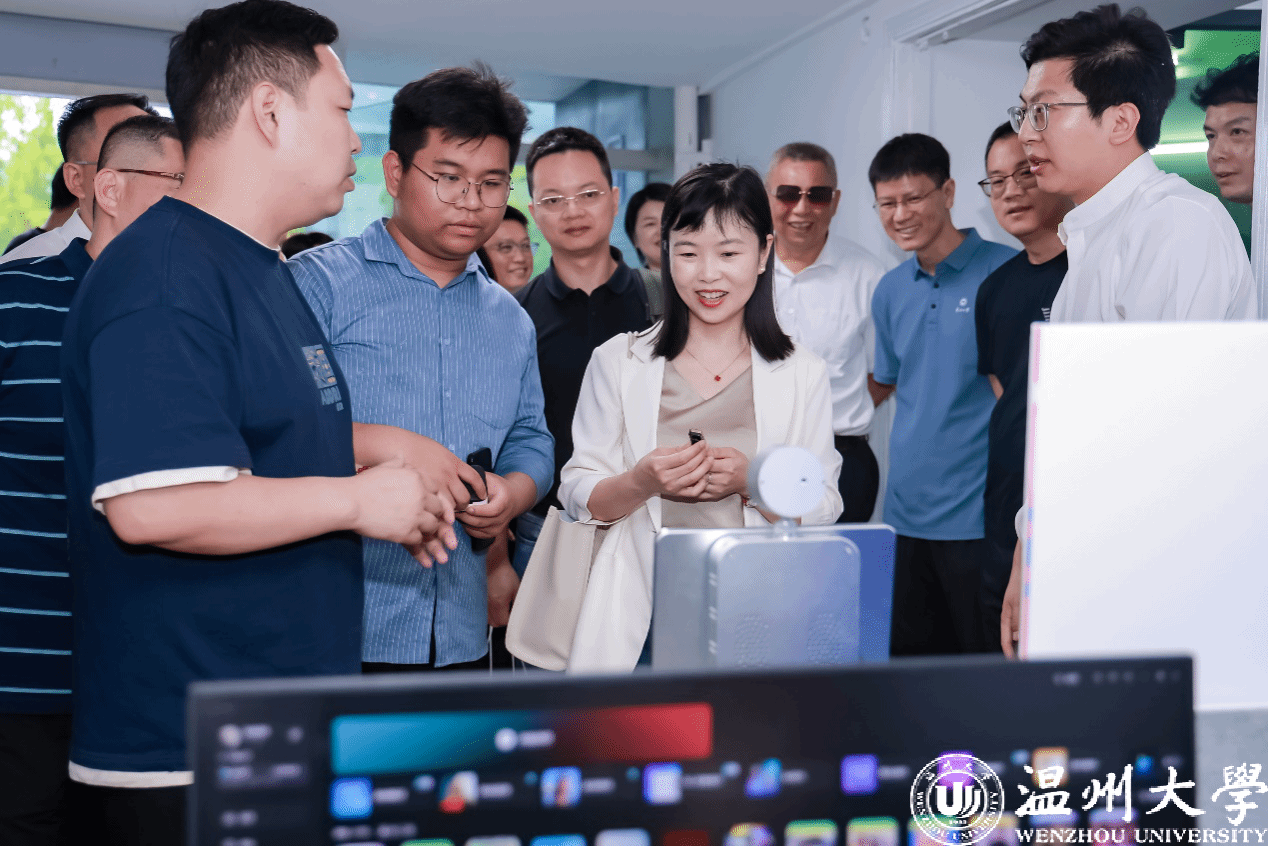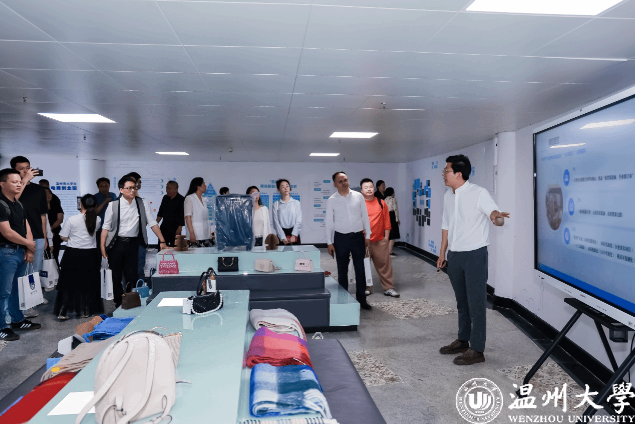 (温大校区)和温州市数字贸易研究院提供人才培养和行业智库支持,创业园也是国贸专业办学40周年赋能外贸行业发展的成果展现。园区负责人向来访嘉宾就园区运营模式、建设思路、展品陈列等做了详细介绍。