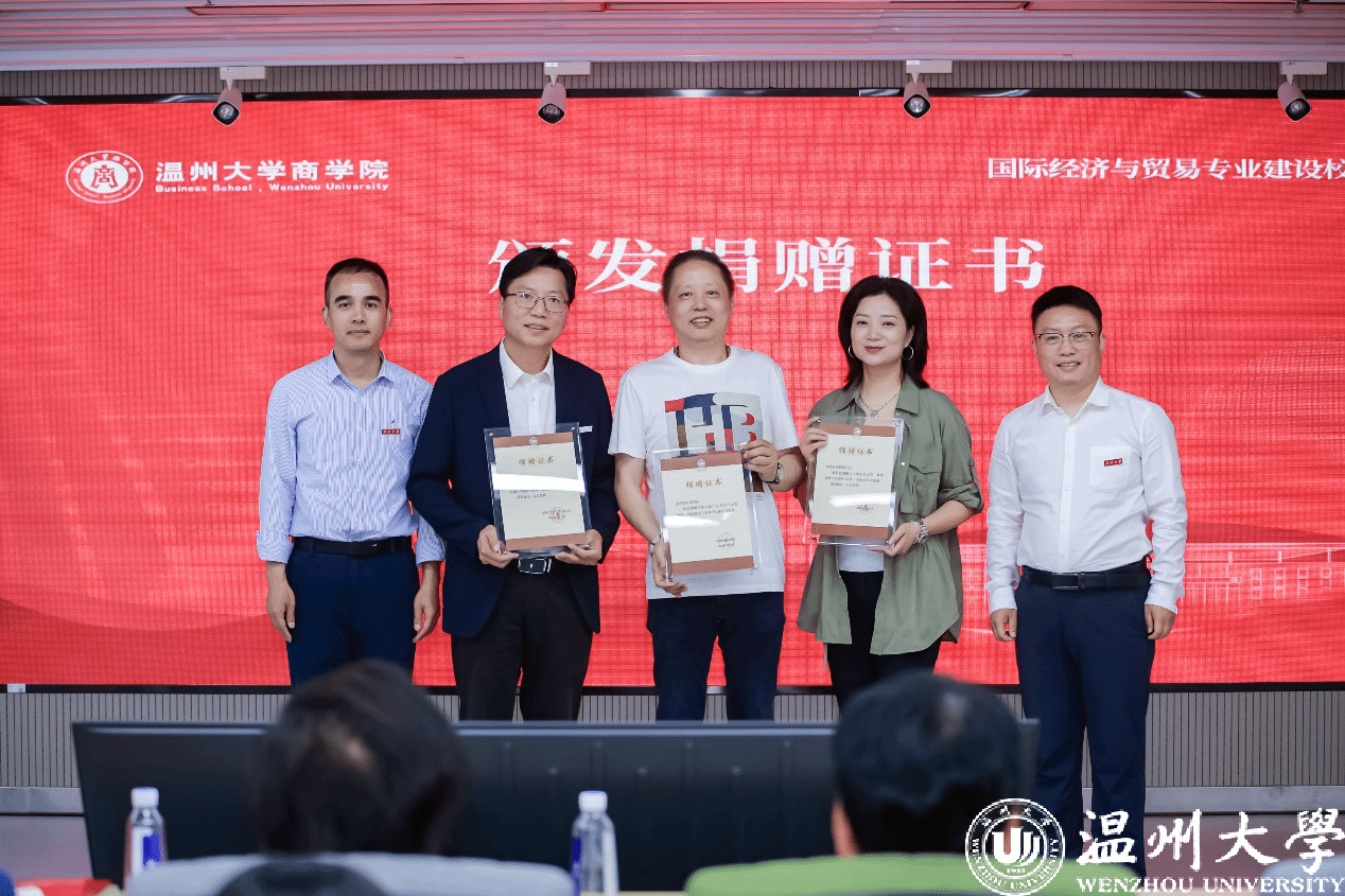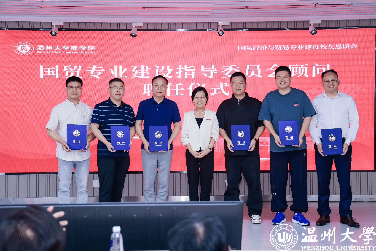 随后举行的国际经济与贸易专业建设指导委员会顾问聘任仪式上,国际经济与贸易国家一流专业建设点负责人林俐教授为陈晓晖、陈增开、诸绍奇、李聪斌、陈济庆、赵小波等等六位企业家颁发聘书,为专业发展注入智库力量。
