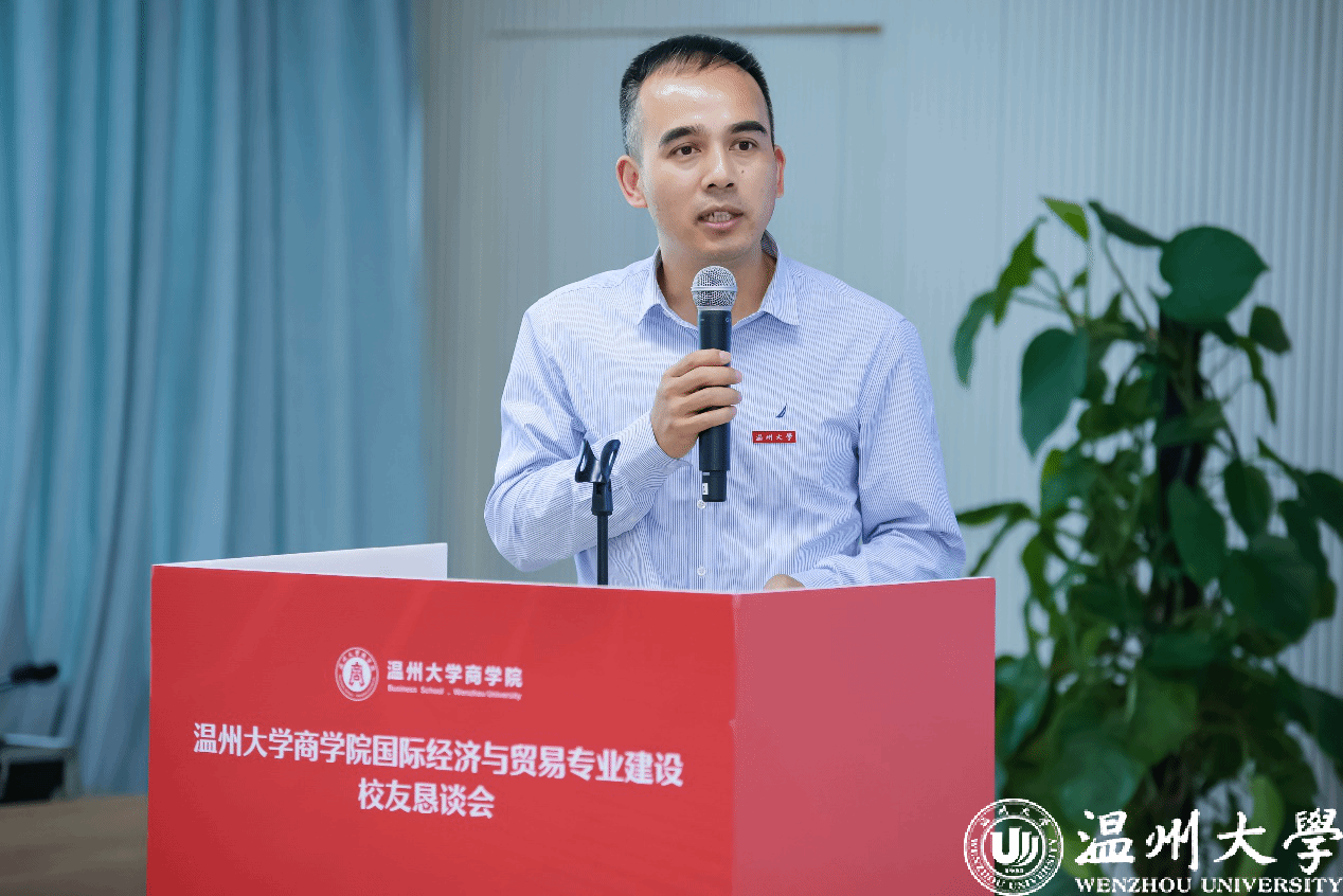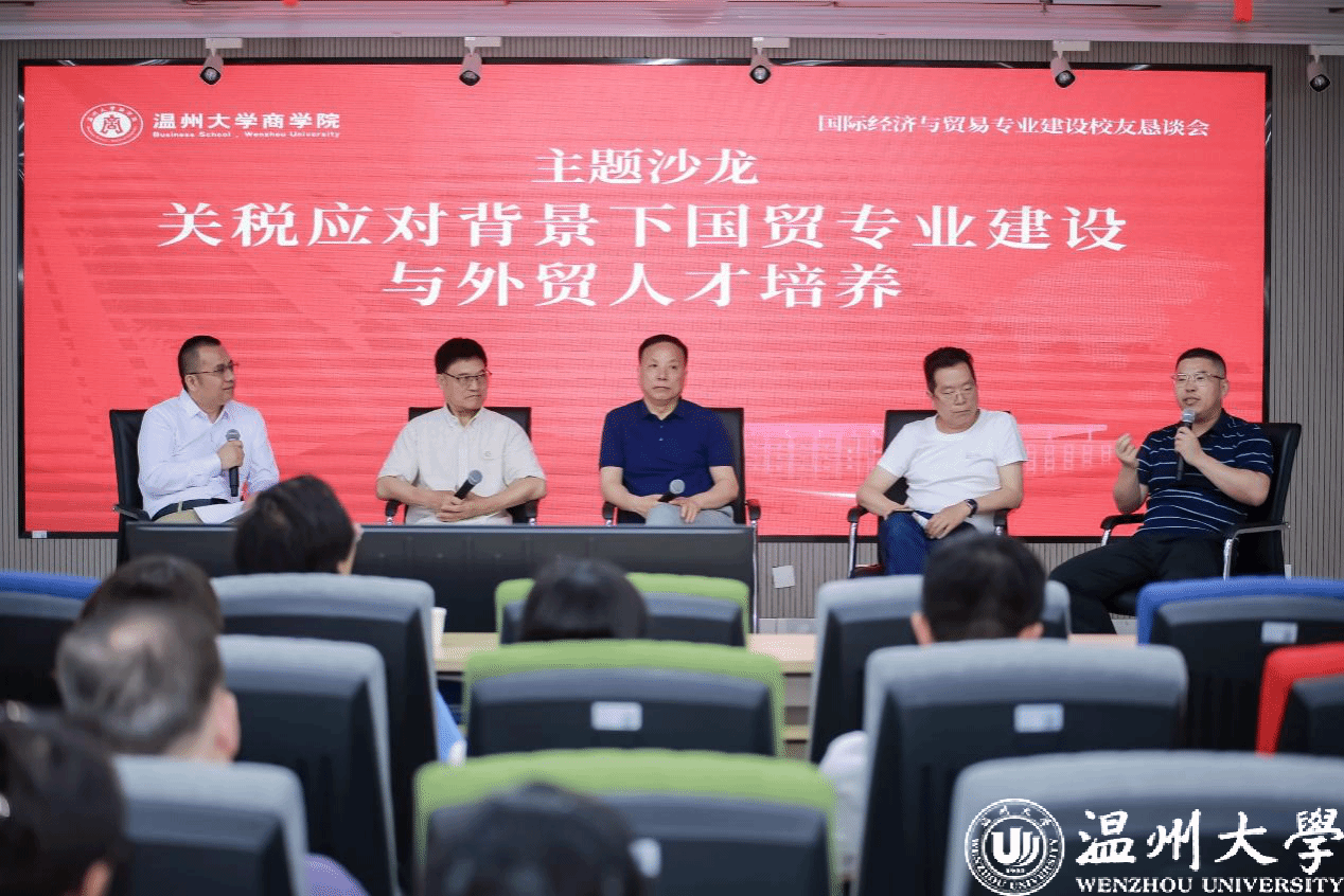 瓯江特聘教授黄剑博士担任学术主持,温州市商务局副局长林松青作主旨发言。林局长指出温州已建立完整外贸生态体系,面对美国关税壁垒,政府已成立专班应对,有效帮助外贸企业纾困,但构建贸易韧性需要政府支持、企业创新和人才培养共同发力。与谈嘉宾和校友企业家代表分享了关税壁垒下企业实际影响,认为贸易政策的不确定性比关税水平本身对企业决策的影响更为深远。面对高关税壁垒,企业可以通过多元化与供应链布局、贸易模式转型与渠道重构等措施来降低影响。在此形势下,国贸人才培养需朝着课程体系重构、能力导向模式升级、产学研协同优化、国际视野与多元文化素养增效方向迈进。与会嘉宾发言踊跃,气氛热烈,在场政府部门、商协会负责人和校友企业家积极互动,碰撞出许多思维火花。