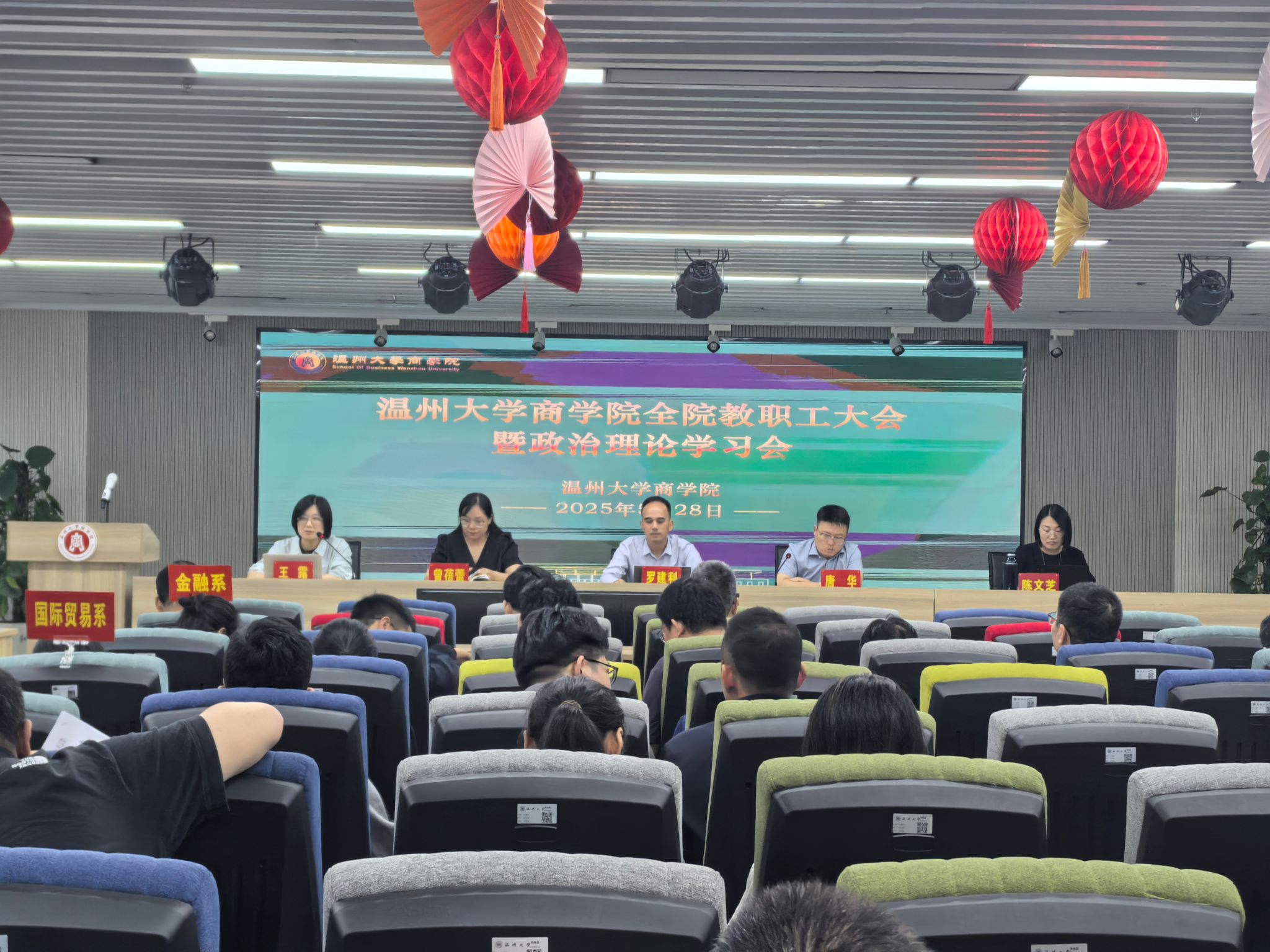 在商院楼A226仲辉商道讲堂举行全院教职工大会暨政治理论学习会,会议由学院党委书记唐华主持,学院全体教职工参加。