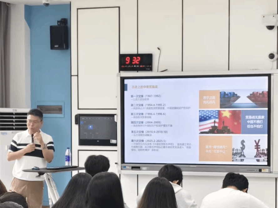 总经理详细阐述了中美贸易战的内容以及外贸新常态。中美双方曾经历六次博弈,从高层协商,到切实影响到人民生活中的衣食住行,中方在这期间逐步成熟、强大起来,将外贸主动权牢牢把握在自己手中。让我们知道国际经济与贸易是与国内和国际大环境息息相关的,提醒我们关心时政、新政策,了解市场变化与规律,警醒我们盲目入市、脱离现实的风险,向我们指明新兴就业方向。