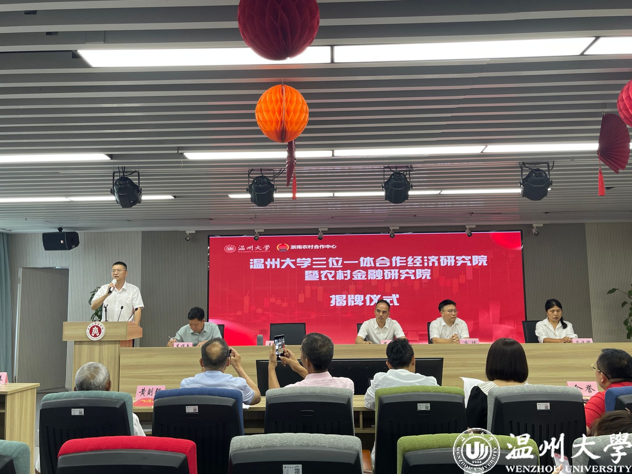 会议进入核心环节,在全体嘉宾热切期待中,多位领导共同为“三位一体”合作经济研究院揭牌。随着红绸滑落,金光闪耀的牌匾正式亮相,现场掌声雷动,标志着成人电影