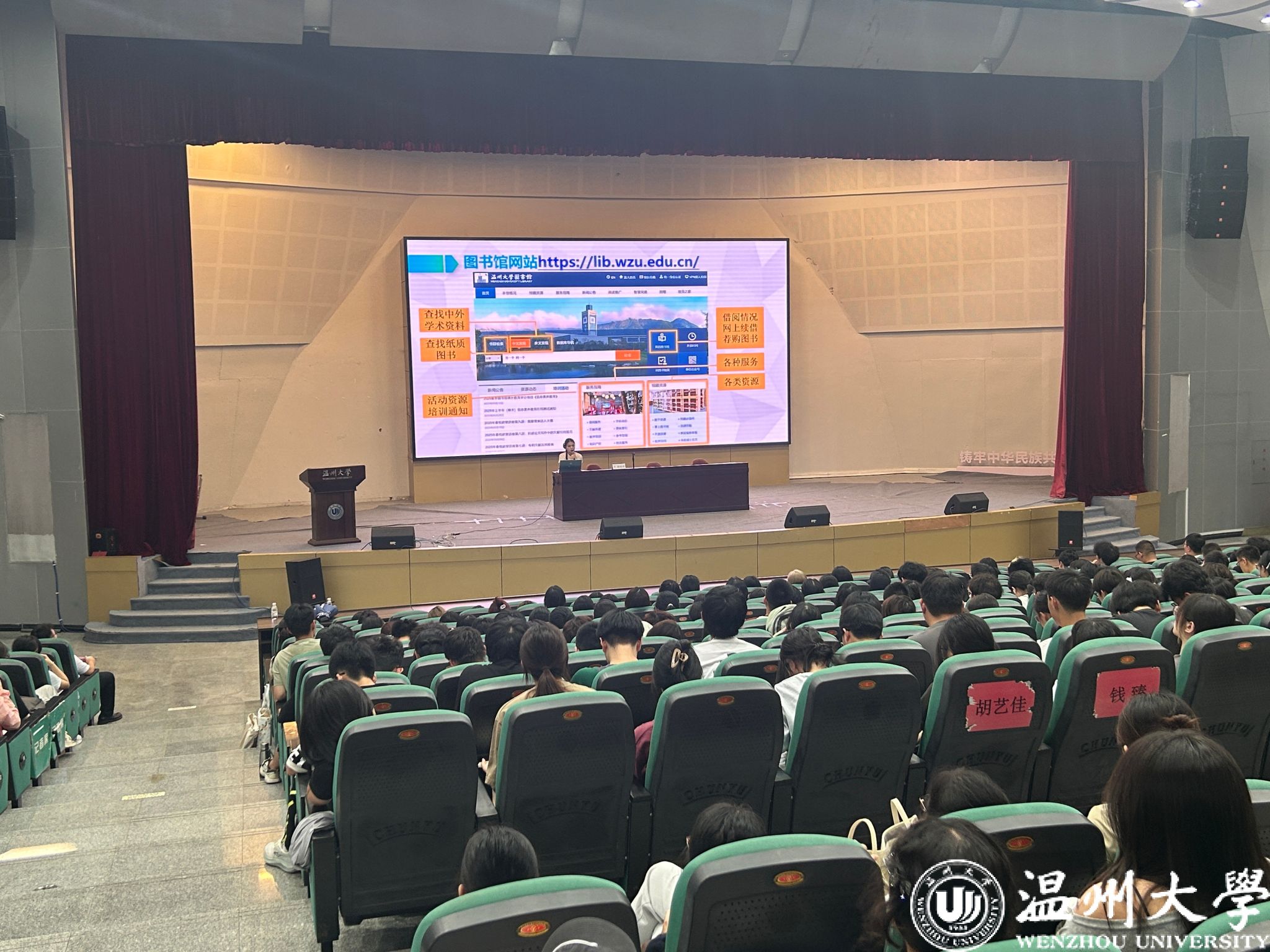 2025级本科新生始业教育之“入馆教育”在南校区报告厅举行。图书馆信息服务中心谢琦琦老师向465名新生系统介绍馆藏与使用方法。