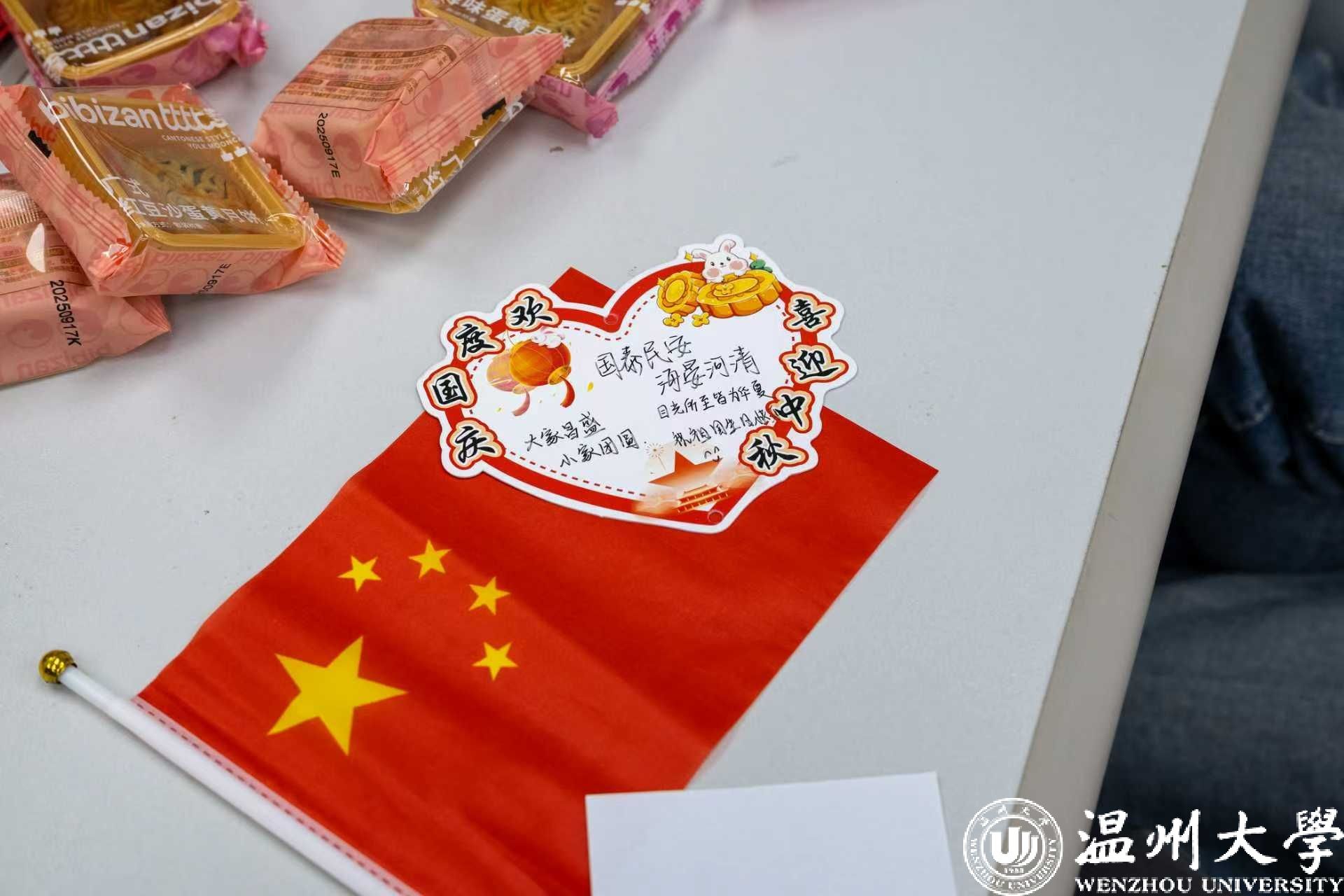 活动现场处处洋溢着喜庆氛围教室四周悬挂着彩色气球,每张座位上都摆放着鲜红的手持小国旗小月饼,教室白板也粘贴了祝福海报,细节之处尽显节日仪式感