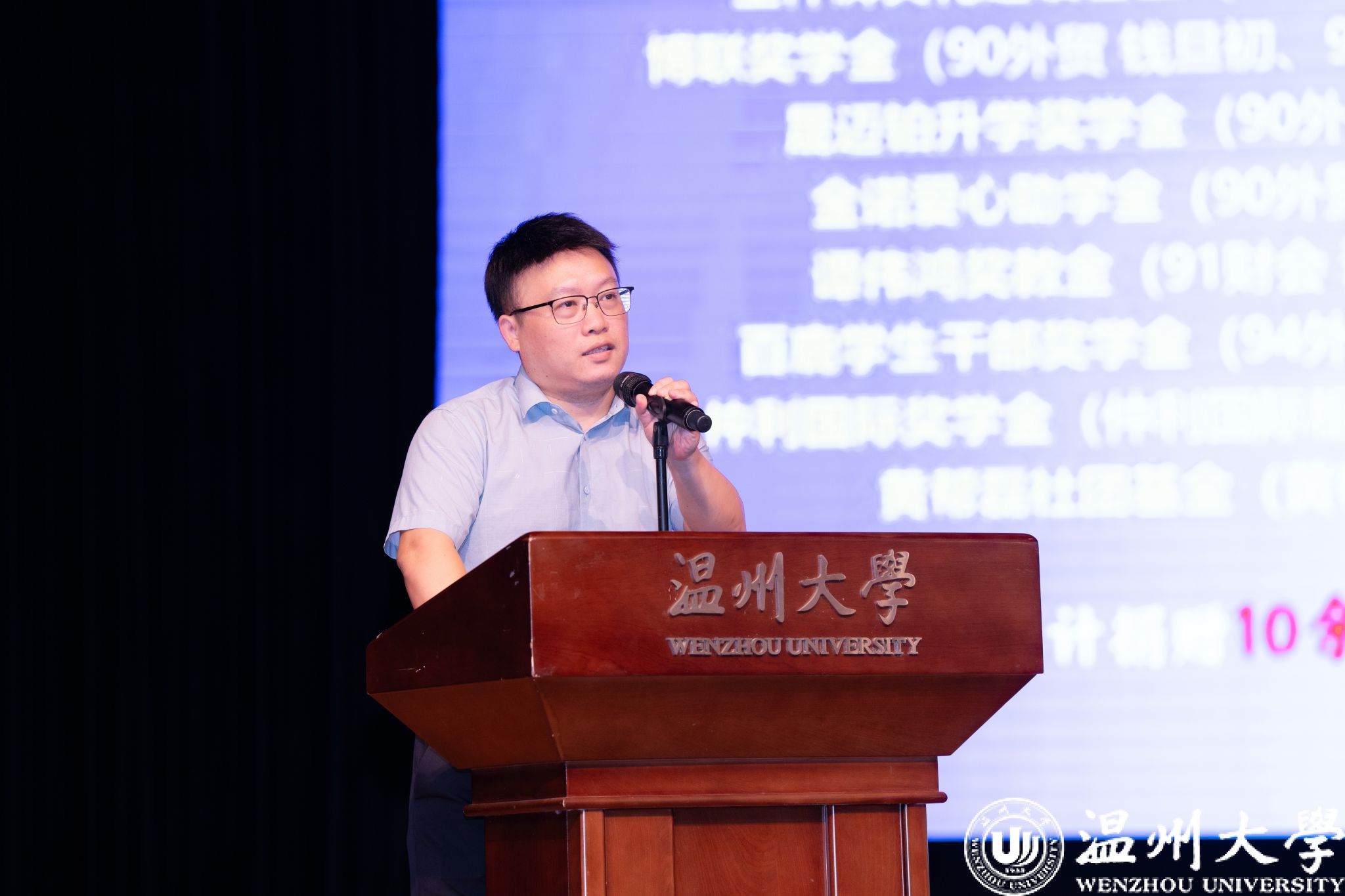 党委书记唐华为新生介绍了我院优秀校友捐赠的各类奖助学金;随后,“書立奖学金” 评选启动仪式正式开启,唐书记介绍了奖学金由来及评选标准与流程,鼓励同学们以更高的标准要求自己,争取获得荣誉。