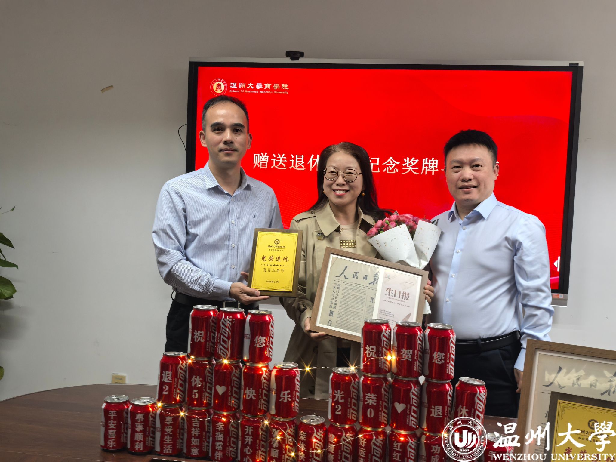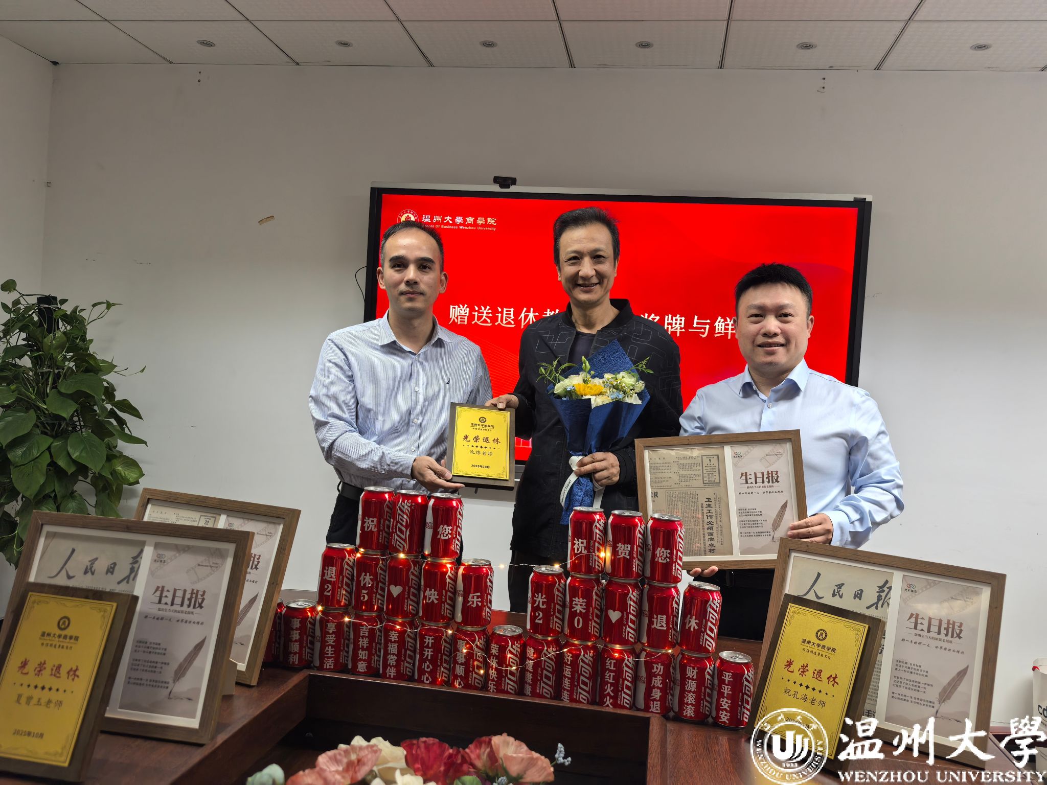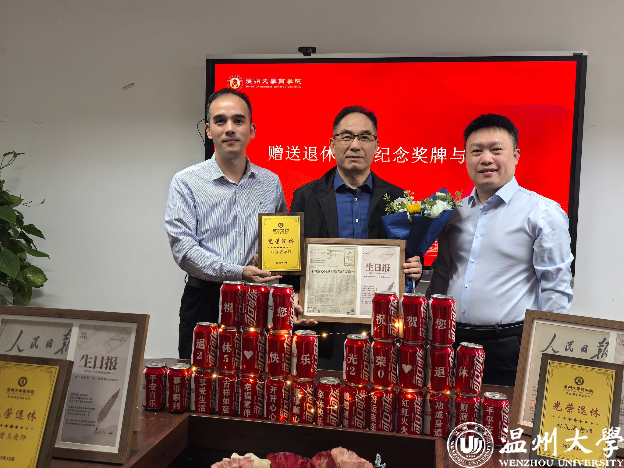 仪式伊始,全场目光聚焦于四位荣休教师——张启明老师、祝孔海老师、夏曾玉老师、沈炜老师。成人电影 院长罗建利、党委书记唐华代表学院,为四位荣休教师逐一献上鲜花与纪念奖牌,并赠送定制化纪念礼品。“落红不是无情物,化作春泥更护花”,荣休教师们的教育情怀与职业坚守,将成为成人电影 永远的宝贵财富。